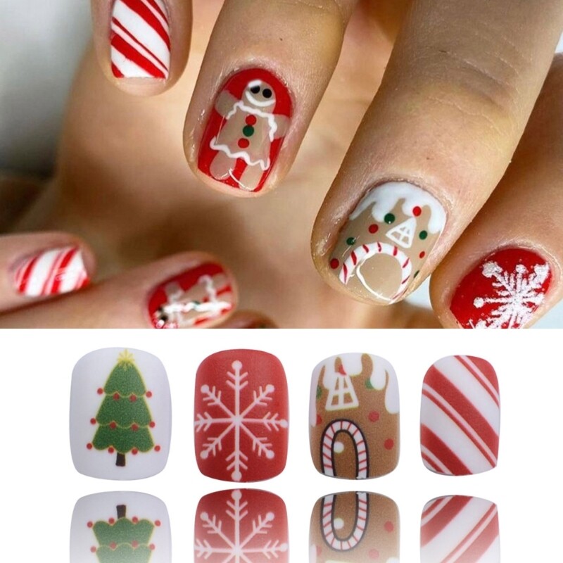 Features: Short square false nails with gingerbreads man designs is lovely, which will add elegant feeling to your Christmas press on nails are suitable for enthusiasts, beauty salons, and anyone who loves to experiment with their look. Candy house full cover on nails is suitable for enthusiasts who want professional results. These false nails are suitable for everyday wear. Funny to decorate nails with your family and friend when family gathering and party, enjoy your special look and the good for time. White snowflake false nails is suitable for various occasions like parties, weddings, and daily life, these false nails will add a touch of confidence and charm to your overall look. Specifications: Component: ABS Package Includes: 1 Box False Nails note: Please allow 1-3cm errors due to manual measurement. Due to the difference betweeen different monitors,the picture may not reflect the actual color of the item.