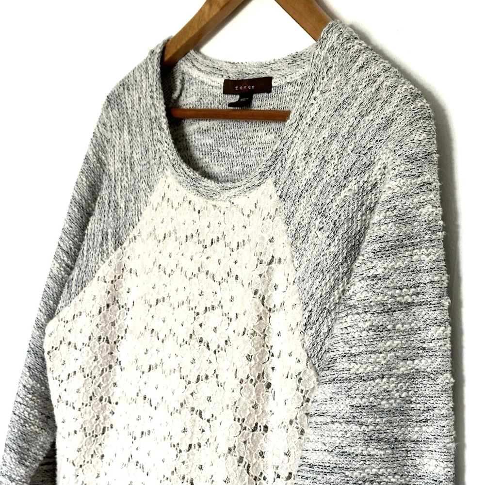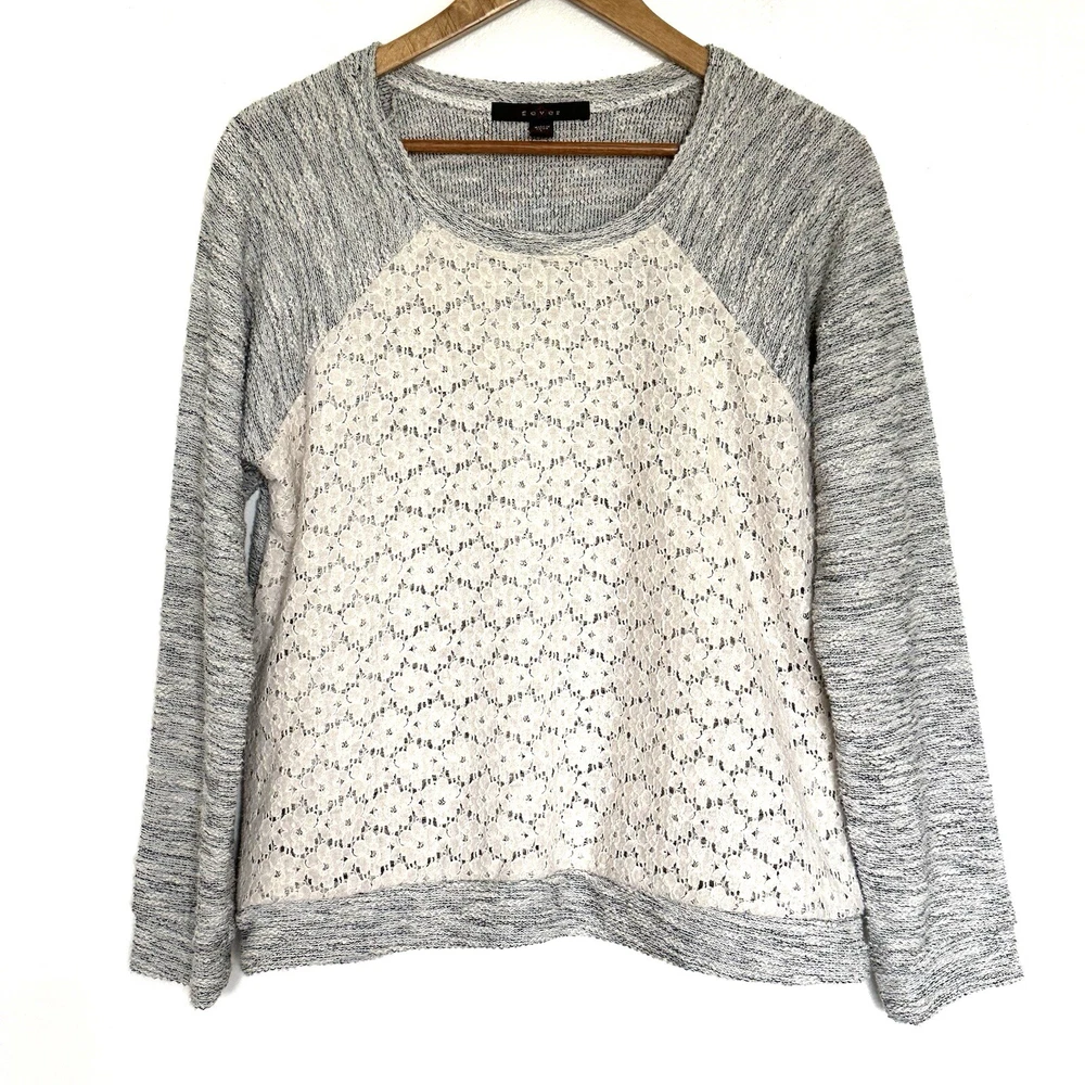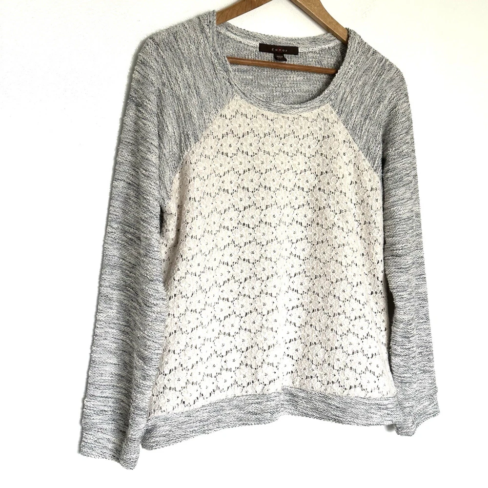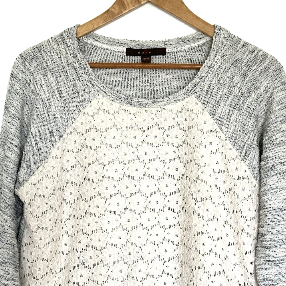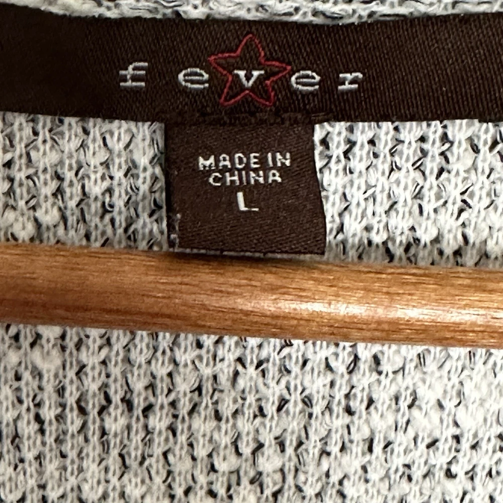 Fever Women’s Sweater Large Grey White Pullover Long Sleeve Crewneck Top