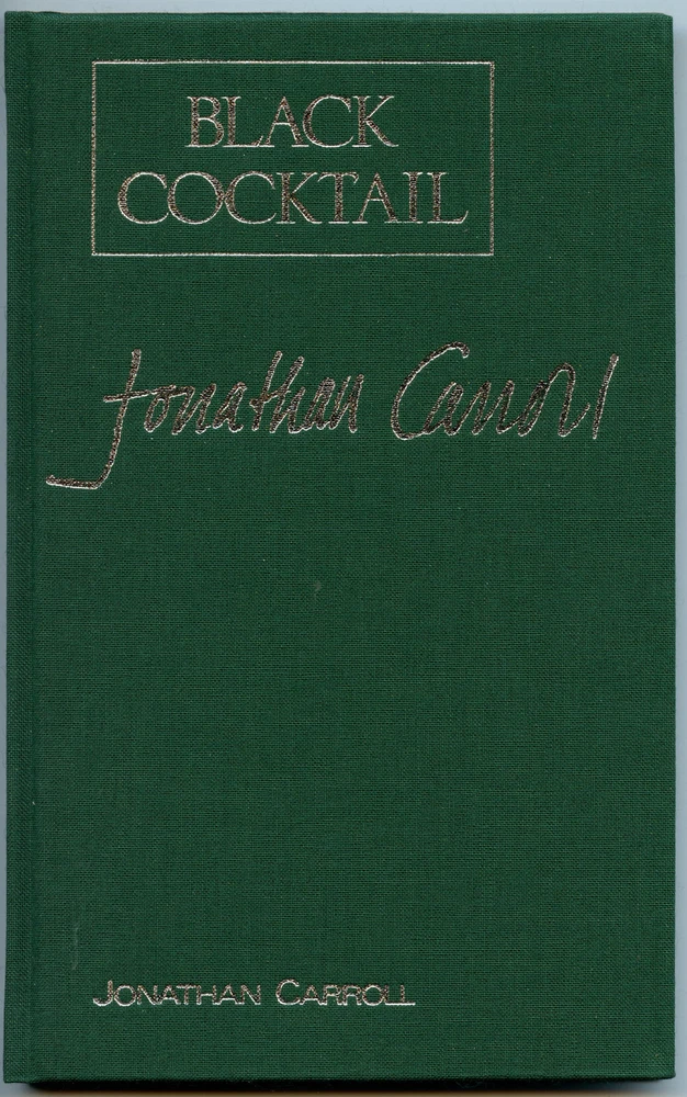 Fiction: BLACK COCKTAIL by Jonathon Carroll. Limited edition of 300, this book is #133. Signed on the title page by the author. In a cloth-covered cardboard slipcase. This is the fifth edition in the Legend Limited series published by Random Century. First Edition. By Carroll. Printed 1990. Published by Random Century Group, London. 5 1/2 inches wide by 8 3/4 inches tall. Slipcase is green cloth over cardboard, with silver stamping on one face. Book has green cloth covers with silver stamping on spine and front covers. Page edges are gilded in silver. 76 pages. Condition: Near mint. Slipcase shows virtually no wear, not even on the corners. Covers show almost no wear, same with edges. Corners are not bumped, spine edges are not rolled. Inner pages are lightly tanned and show little wear. No scribings or stampings within. Great condition for this set. Money back upon return if not satisfied or any problems with shipping within the US. Due to changes at the US Postal Service, we can no longer guarantee delivery on international mail.Thanks for looking. International Buyers – Please Note: Import duties, taxes, and charges are not included in the item price or shipping cost. These charges are the buyer's responsibility. Please check with your country's customs office to determine what these additional costs will be prior to bidding or buying. 03/20/12 0/8