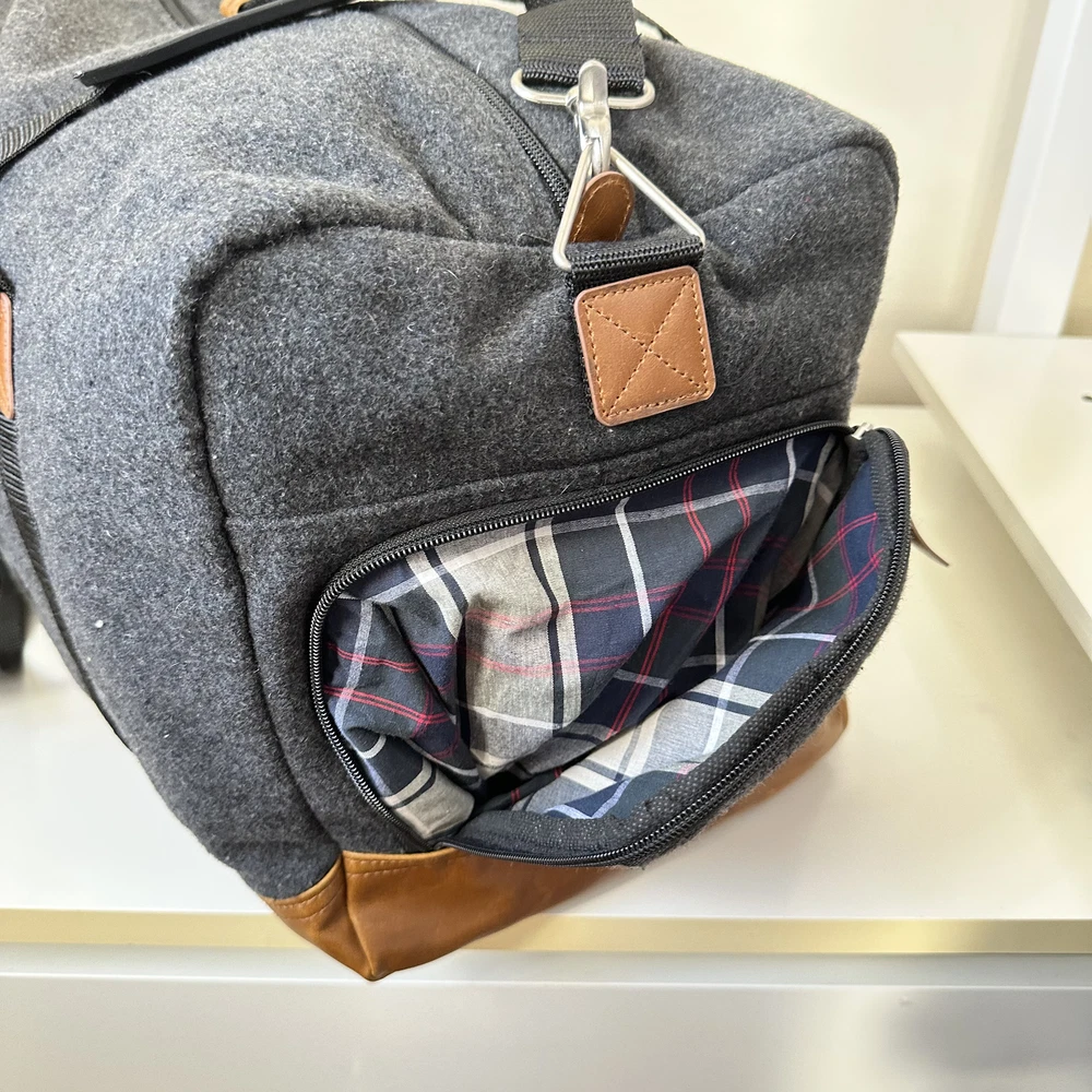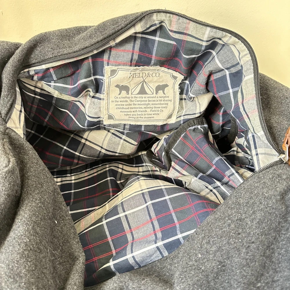 gtin13: Does not apply Brand: Field & Co Fabric Type: Fleece Handmade: No Size: Large Features: Outer Pockets, Inner Pockets, Key Clip, Lightweight, Lined, Packable Strap Drop: 10” Inches Character: None Personalize: No Bag Width: 17” inches MPN: Does Not Apply Handle Style: Double Straps Lining Material: Unknown Bag Height: 11” inches Material: Unknown Occasion: Business, Casual, Formal, Travel UPC: Does not apply Vintage: No Seller Notes: “Lightly used and in very good condition.” Handle/Strap Material: Unknown Country/Region of Manufacture: Unknown Style: Duffle Pattern: Solid Closure: Zip Bag Depth: 10.5” inches Department: Men Customized: No Color: Gray