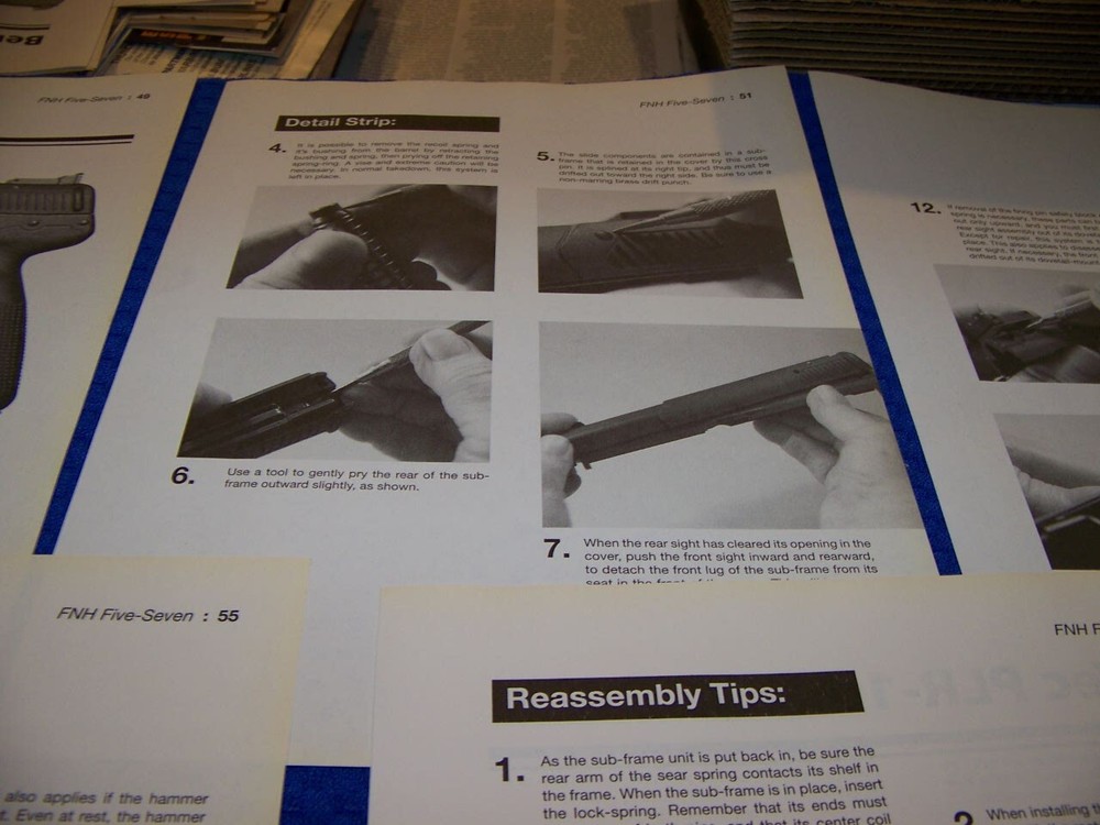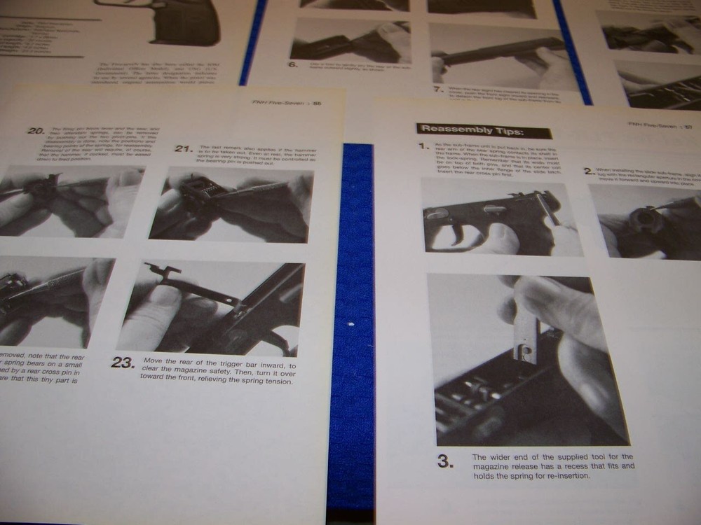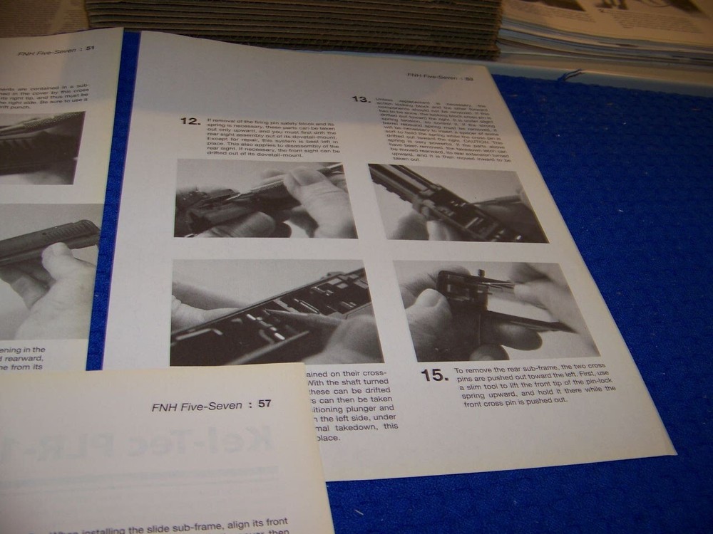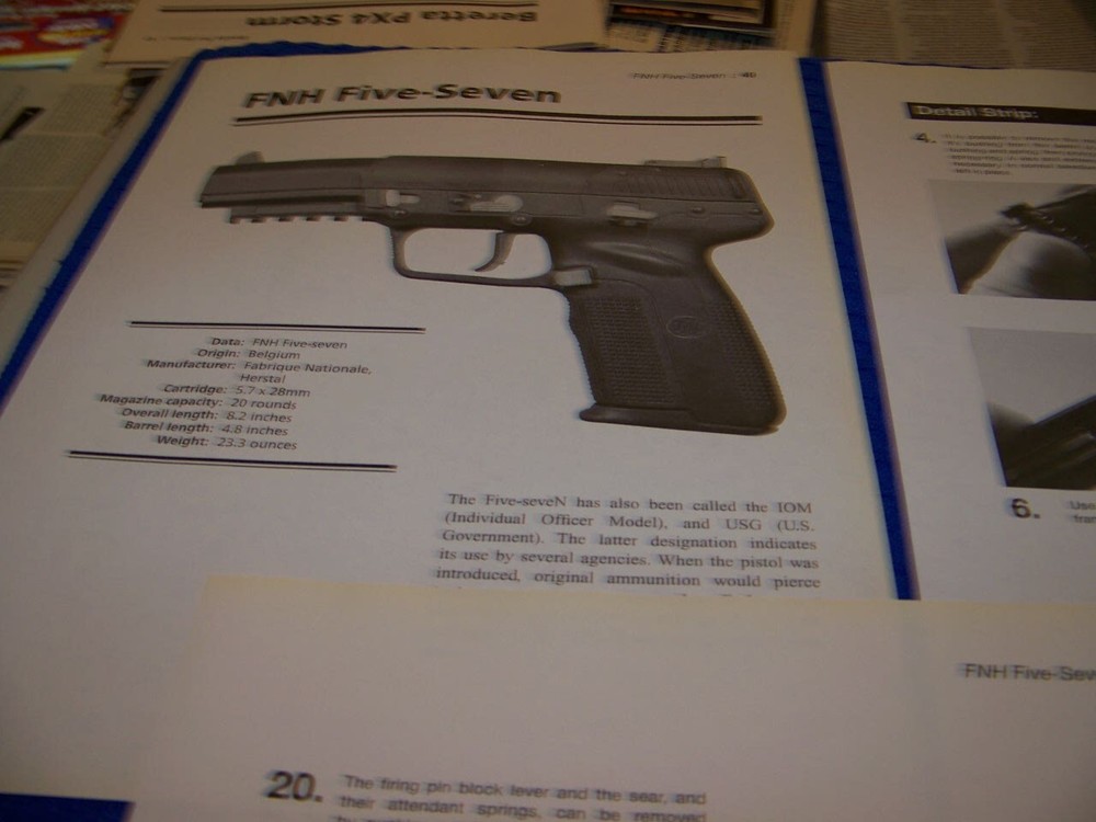 NOTE: THE REASSEMBLY TIPS ARE VERY VERY SHORT!...REASSEMBLY IS DONE IN REVERSE ORDER OF THE INSTRUCTIONS AND PHOTOS THESE ARE EXTREMLY RARE PROFILES OF ALL TYPES OF GUNS SUCH AS LISTED BELOW!.........DONT MISS YOU CHANCE TO AD THIS TO YOUR COLLECTION! THESE ORIGINAL PERIOD (1960'S/70'S/80'S/90'S ) PAPER ARTICLES WERE BOUGHT FROM A GUN COLLECTOR ESTATE SALE AND ARE SLEDOM SEEN!.......ALL IN AWESOME CONDITION FOR THEIR AGE! UP FOR SALE IS AN ORIGINAL PRINT 13-PAGE ARTICLE ON:.. FNH FIVE-SEVEN (5.7) (7-PAGES) & KEL-TEC PLR-16 (5.56) (6-PAGES) Page/s size: APROX: 8 1/4 " X 10 1/2" AUTHOR/ARTIST: N/A YEAR: 2008 ORIGINAL PRINT SCALE: N/A ARTICLE FEATURES: HISTORY/DETAILS/PHOTO/TAKEDOWN INSTRUCTIONS WITH PHOTOS/ REASSEMBLY TIPS (SHORT) /SPECS & DATA CHART CONDITION: GREAT-LIGHT COLORING (NORMAL ). ** SOLD FOR 13-PAGES DRAWINGS/PROFILES ...ANY OTHER ARTICLE ON BACK OF DRAWINGS/ARTICLE ARE NOT REPRESENTED IN THIS AUCTION! *** (REMEMEBER THESE ARTICLES ARE EXTRMELY OLD AND RARE...SOME MAY HAVE SOME BORDER DISCOLORATION/SMALL EDGE CHIPS/PAGE DISCOLORATION)/BINDING CUTOUTS....SEE CONDITION AND NOTES LISTED ABOVE AS TO EACH ARTICLE! **THESE ARE AIRCRAFT ARTICLES THAT HAVE BEEN EXTRACTED FROM VINTAGE MAGAZINES/ECT... AND ARE INDIVIDUAL PAGES OF EACH SUBJECT AND SOLD AS COMPLETE ARTICLES ON EACH SAID AIRCRAFT AS LISTED ABOVE! NOT SOLD AS A COMPLETE MAGAZINE or BOOKLET!!! **all articles are shipped flat on cardboard flat and mail flat in manila envelope to INSURE condition! ** I DO OFFER COMBINED SHIPPING ON MULTIPLE ITEMS PURCHASED