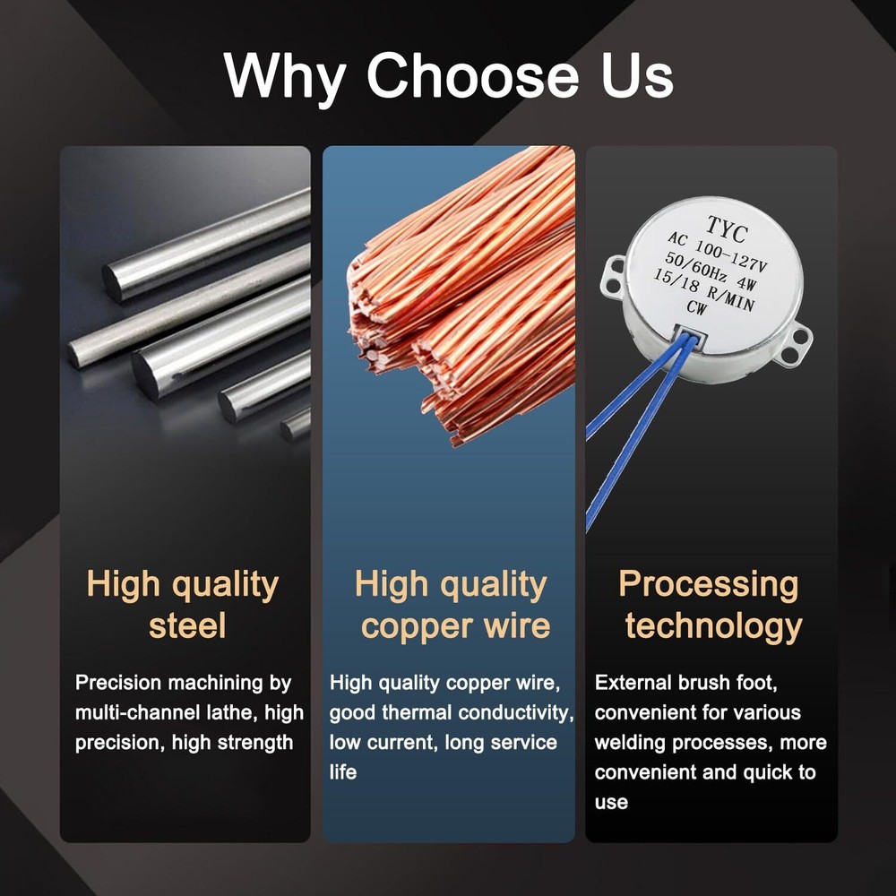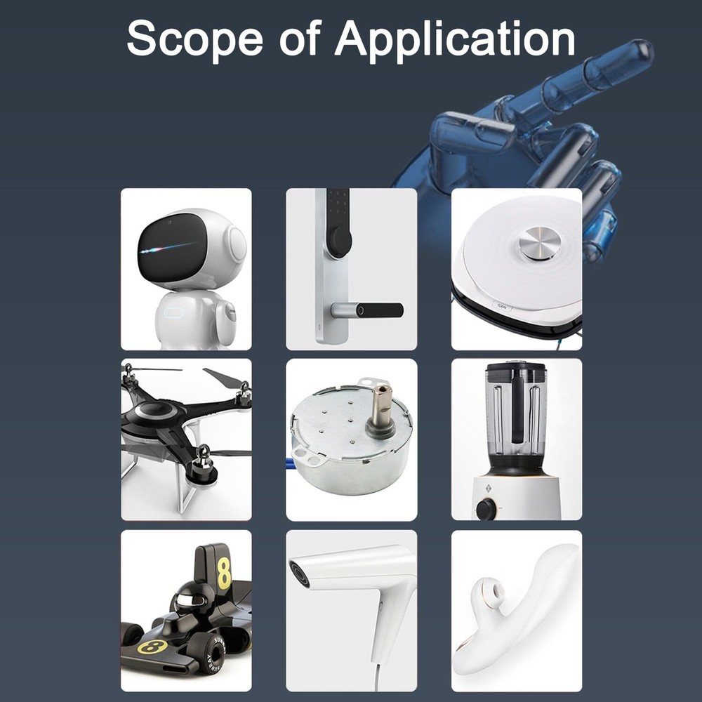 Fielect Synchronous Motor AC 110V 15-18RPM Turntable Motor CW Direction 4W 【Parameters】 - Voltage:AC110V; Speed:15-18RPM; Power:4W; Direction:CW; Diameter:49.8mm/1.96"; Thickness:20.5mm/0.81"; Wire length:400mm/15.75"; Shaft diameter:7mm/0.28"; Shaft length:15mm/0.59" 【Advantage】 - The synchronous reluctance motor small in size, light in weight and easy to use,which is good for handmade, DIY projects, models and anything you want 【Features】 - The synchronous motor has low power consumption, large torque, large operation, low noise and easy installation. It is an ordinary AC motor 【Application】 - AC synchronous motors are mainly used for air guide mechanisms of electric fans, head shaking mechanisms, heaters, lamps and other electrical appliances 【Noted】 - This kind of synchronous motor is a non-directional synchronous motor. When the load reaches the rated torque of the motor, it will automatically reverse. Do not use external force to rotate the motor shaft Fielect Synchronous Motor Specifications: Brand:Fielect Voltage:AC110V Speed:15-18RPM Power: 4W Direction:CW Diameter:49.8m/1.96" Thickness:20.5mm/0.81" Wire Length:400mm/15.75" Shaft diameter:7mm/0.28" Shaft length:15mm/0.59" Material:metal and plastic Color:Silver gray Product description: 1.The permanent magnet synchronous motor and the reducer are combined into one, which can control the advantages and disadvantages of the synchronous motor. 2.Under the rated frequency, the motor speed is not affected by the voltage and remains stable. If the motor is overloaded or blocked, the motor coil will not be burned. 3.The slower the speed, the greater the torque, and use it within the specified voltage and power range of the product. Avoid product damage due to improper use. Package Content: 2Pcs x Synchronous Motor Wire Note: 1.The size of the product are manually measured, please allow slight errors, thank you for your understanding. 2.The actual product and the color of the item shown in the picture may be slightly different from the actual product, please refer to the actual product. 3.Please pay attention to the size of the item before you purchase it. Shipping We offer FREE shipping on all orders! We ship within Three business days of payment, usually sooner. We use a selection of shipping services such as UPS, FedEx, USPS etc. We only ship to the lower 48 states, no APO/FPO addresses or PO Boxes allowed. Local pickups and combined shipping options are not provided at this time. Return You can return a product for up to 30 days from the date you purchased it. Any product you return must be in the same condition you received it and in the original packaging. Please keep the receipt. Payment We accept payment by any of the following methods: PayPal Please pay as soon as possible after winning an auction, as that will allow us to post your item to you sooner! Feedback Customer satisfaction is very important to us. If you have any problem with your order, please contact us and we will do our best to make you satisfied. Contact Us If you have any queries, please contact us via ebay. We usually respond within 24 hours on weekdays. Please visit our eBay store to check out other items for sale! Thank you for shopping at our store.