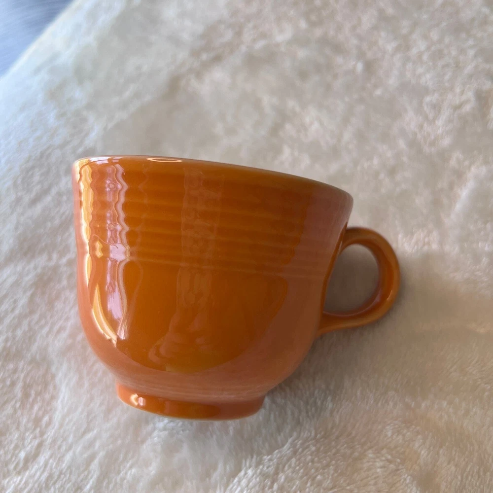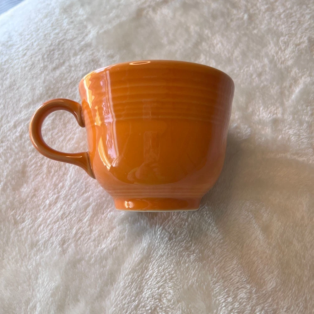 Fiestaware Tangerine (Retired) TeaCup & Saucer Set Color: Tangerine Orange (Retired) Retired Color 2003-2017 Contemporary - Post 86 Homer Laughlin China Co. Fiesta Ware Pottery Classic 7 3/4 oz Tea Cup Height: 2 3/4 in Width: 3 1/2 in Holds 7 Ounces Classic Rim 5 7/8 Inch Saucer Diameter 5 7/8" Height 7/8" Only fits the Cup (#452) Dishwasher, oven, and microwave safe Fully vitrified lead-free china with a color glaze Made in the USA Pre-Owned in Excellent Condition (EUC) *Colors may vary depending on lighting and individual viewing devices Offers Welcomed Bundle Discounts Available Fast Shipping 5 Star Seller Thank you for shopping my closet! Fiestaware, Teacup & Saucer, Fiesta, Retired, Tangerine, Pottery, Collectible, Vintage, Tea Cup, Coffee, Java, Value increases, Collector