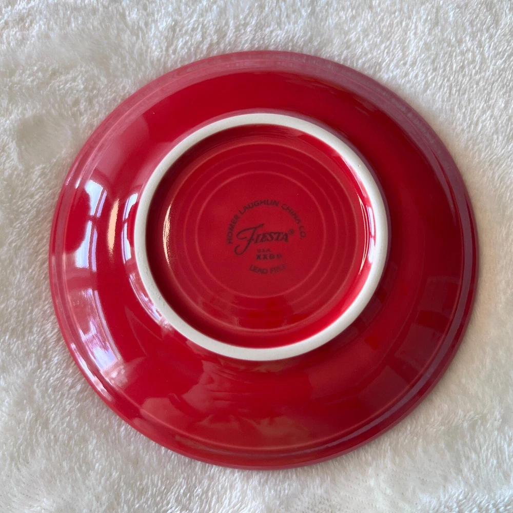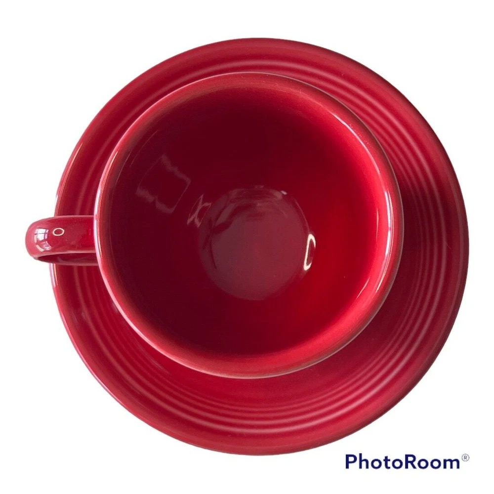 Fiestaware Scarlet Teacup & Saucer Color: Scarlet Red Contemporary - Post 86 Homer Laughlin China Co. Fiesta Ware Pottery Classic 7 3/4 oz Tea Cup Height: 2 3/4 in Width: 3 1/2 in Holds 7 Ounces Classic Rim 5 7/8 Inch Saucer Diameter 5 7/8" Height 7/8" Only fits the Cup () Dishwasher, oven, and microwave safe Fully vitrified lead-free china with a color glaze Made in the USA Pre-Owned in Excellent Condition (EUC) *Colors may vary depending on lighting and individual viewing devices Offers Welcomed Bundle Discounts Available Fast Shipping 5 Star Seller Thank you for shopping my closet! Fiestaware, Teacup & Saucer, Fiesta, Pottery, Collectible, Vintage, Tea Cup, Coffee, Java, Value increases, Collector
