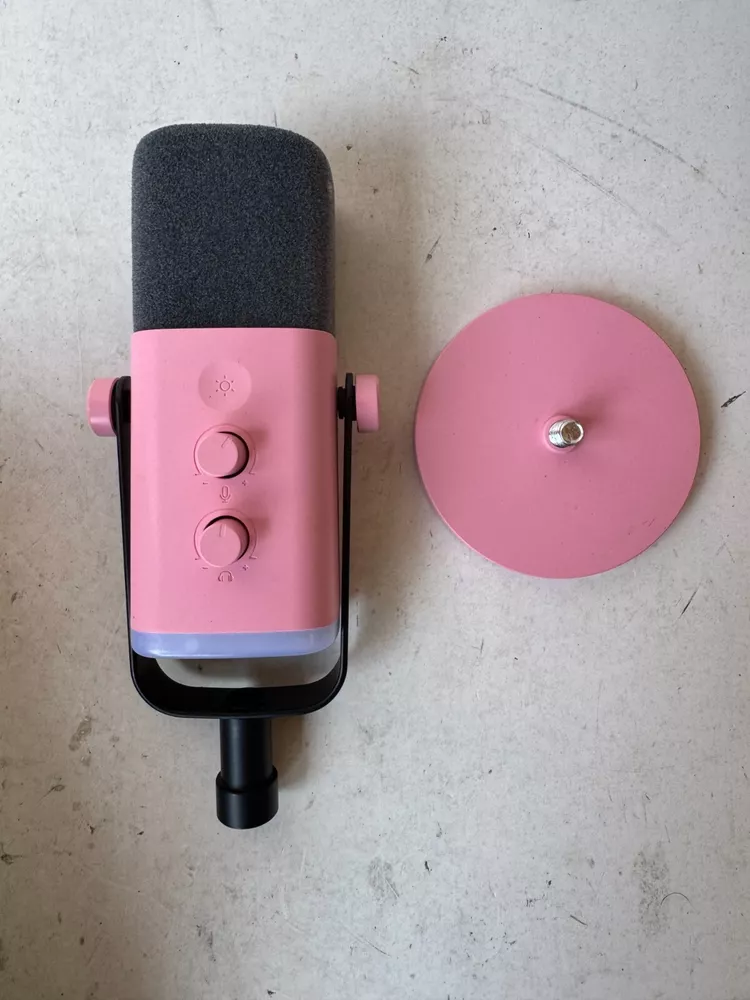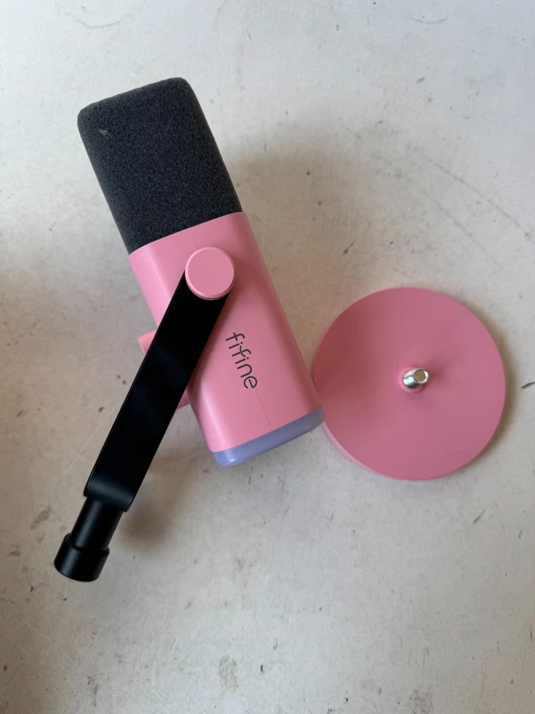 Transducer Type: Dynamic Diaphragm Size: Medium gtin13: Does Not Apply UPC: Does Not Apply Model: Fifine AM8 Country/Region of Manufacture: China Features: Adjustable Stand, Mute Switch, Plug and Play Suitable For: Studio Recording Brand: FIFINE Connectivity: USB Form Factor: Dynamic Microphone Seller Notes: “New open Box.” MPN: AM8 Color: Pink
