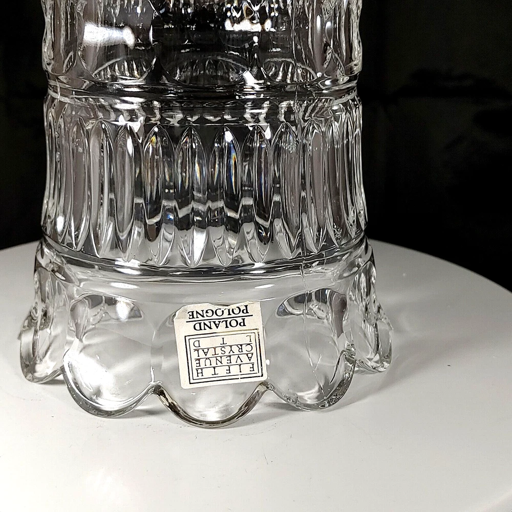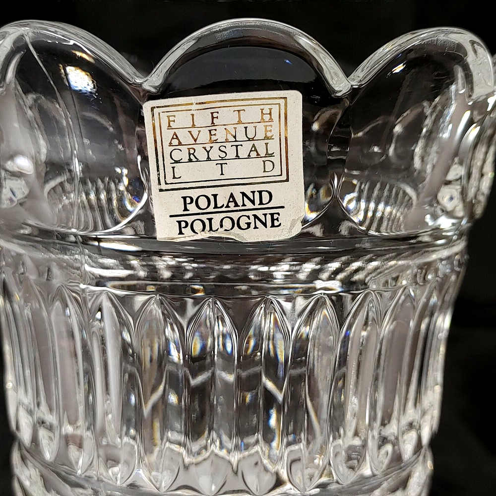 Fifth Avenue Poland Cut Crystal Footed Hurricane Vase or Candle Holder Tall Excellent condition Size: 7-1/2 x 5-1/4" (Holds tall pillar candle) Ships FAST from Canada with Tracking We take extra care in packaging to ensure safe arrival of your item. All parcels are shipped with tracking so that you can monitor the shipment progress and delivery. . ** Have a Great Day!.USA buyers save with currency exchange on purchase.We ship UPS, Canada Post and Fedex as postage requires. Thank you for being a valued customer!