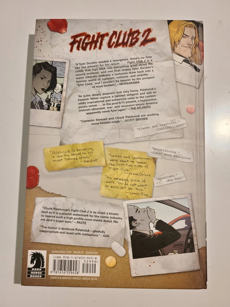 "Fight Club 2" is a hardcover graphic novel published by Dark Horse Comics in June 2016. It features characters like Marla Singer, Tyler Durden, and Chuck Palahniuk in a modern crime and thriller setting. The series falls under US Comics tradition and is cover illustrated by David Mack, appealing to fans of comics and graphic novels.