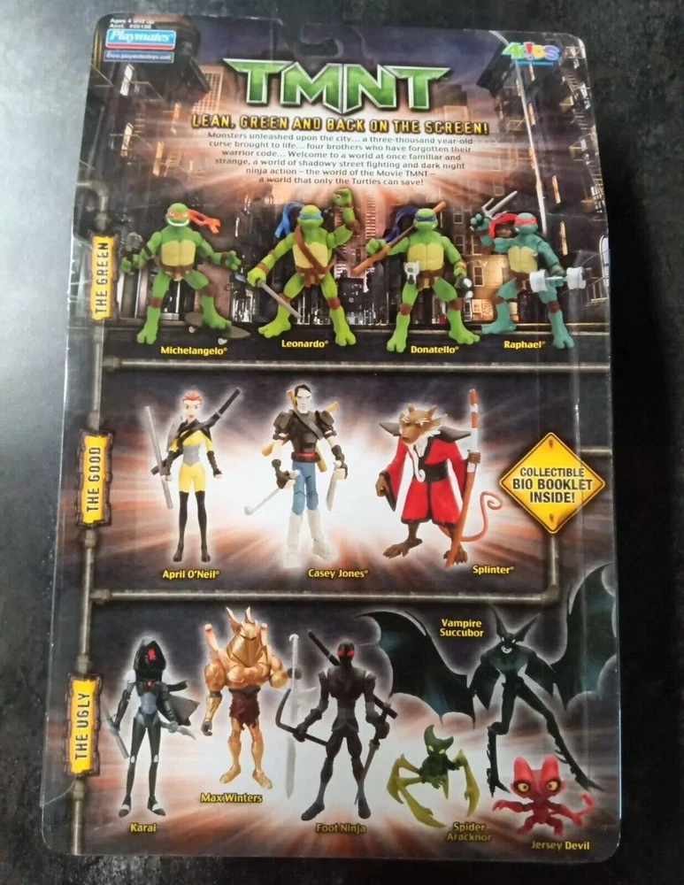 Sport:Mixed Martial ArtsColor:MulticolorModel:N/AItem Width:3 inFeatures:Adjustable, BoxedSeller Notes:“The item is new, but there may be some flaws. If you cannot accept it, please do not purchase.”Material:PlasticBrand:Playmates ToysYear Manufactured:2006Type:Action FigureSeries:TMNTTime Period Manufactured:2000-2009Original/Licensed Reproduction:Originalgtin13:Does not applyTheme:TV, Movie & Video GamesCountry/Region of Manufacture:ChinaItem Height:6 inVintage:NoFeatured Person/Artist:LeonardoAge Level:4+Animal Species:TurtleFranchise:Teenage Mutant Ninja TurtlesUPC:Does not applyMovie:Teenage Mutant Ninja TurtlesCharacter:LeonardoScale:N/AConvention/Event:N/ATV Show:Teenage Mutant Ninja Turtles