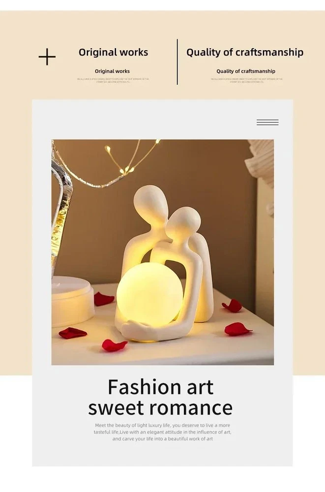Free and fast shipping , shipping take up 1-7 Business Days 30 Day Return Accepted EASY PAYMENT via PayPal, Credit Card, PayPal Credit, Google Pay... Figurine Couple Lamp Multicolor Resin Romantic Small Carved Free Stand Decor Material:Ceramic+PVC ball Size: Please see the picture or ask the seller Function: home decoration, gift giving Applicable scene:living room, bedroom, office Packing:box + bubble bag + foam filling (very safe packaging) Buyer Protection: ① A full refund for damaged products. ②No reason to return within 15 days. ③60-day buyer protection, money-back guarantee. (Subject to AE notice) About the store 1. The package uses a bubble column which is very strong and striking. 2. There are high-quality logistics partners to ensure packages are on time (some packages cooperate with official logistics) 3.If you receive damage to items, please don't negative comment, you can contact online customer service, provide photos, verify it, reshipment for you 4. If you find that something is missing, you can contact online customer service. After checking the weight, if anything is missing, you can spend it again for free. 5. If logistics has not updated new information for a long time, you can directly contact online customer service to solve it for you. Do not claim disputes directly. Thank you for your understanding. 6. The outer layer uses black packing bags or yellow adhesive tape for privacy in terms of packaging, me and my little friends are very careful! REVIEWS The product came very well packaged. I'm very happy. thank you for everything. Seller strongly recommended. This is great! I definitely recommend! Product looks amazing Delivery was fast. Excellent seller, great communication. I advise everyone to buy it!