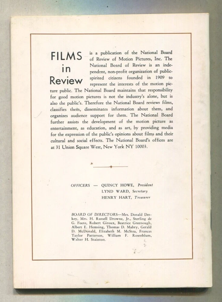 Publication Month:JuneTopic:CelebrityPublication Year:1968UPC:Does not applySeller Notes:“very good”Language:Englishgtin13:Does not applyPublication Name:Films In ReviewCountry/Region of Manufacture:United States