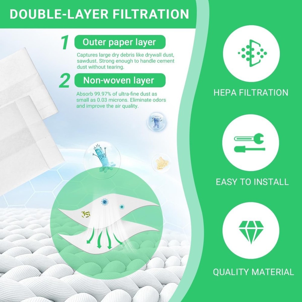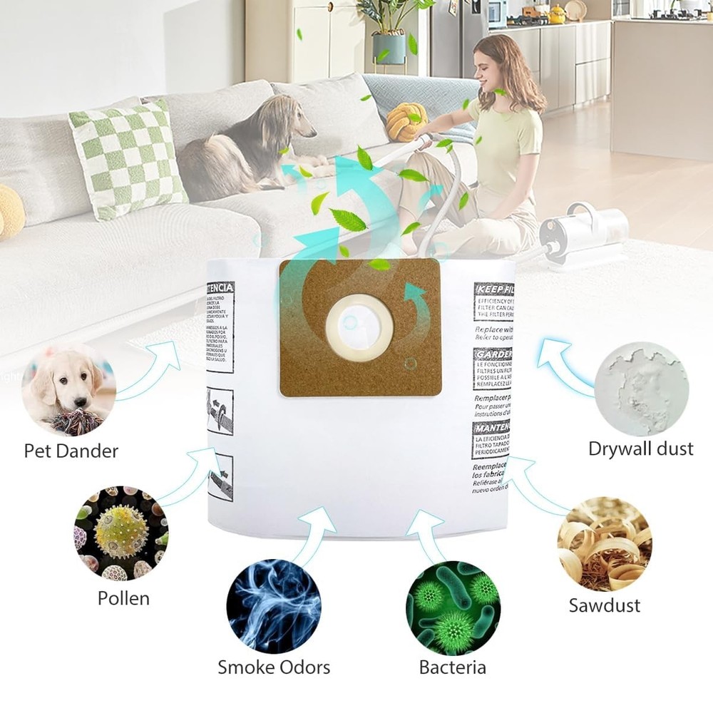 90668 Filter Bags Compatible with Shop Vac 2-2.5 Gallon Wet/Dry Vacuum
