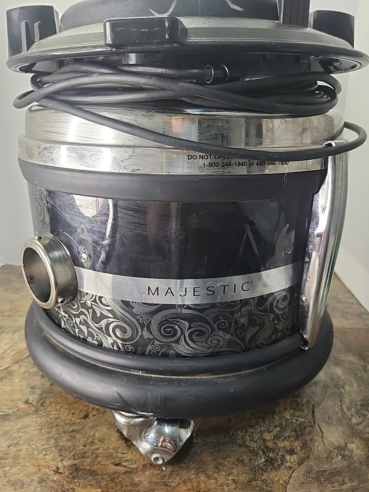 This Filter Queen Majestic M360 Canister Vacuum Cleaner is a powerful cleaning tool that will leave your home spotless. With a motor that is both efficient and effective, this vacuum cleaner effortlessly tackles dirt, dust, and debris. The electric corded power source ensures that you can clean your home whenever you need to, without worrying about battery life. The unit type is a canister vacuum cleaner, and it is compatible with Filter Queen brands. The model number is M360, and it is made in the United States. The set includes one motor, and it is a universal compatible model. This vacuum cleaner is perfect for anyone who wants a clean and healthy home. The item has some scratches wear from pre-owned. The item has been tested and does work.The item has no attachments with it. See pictures.