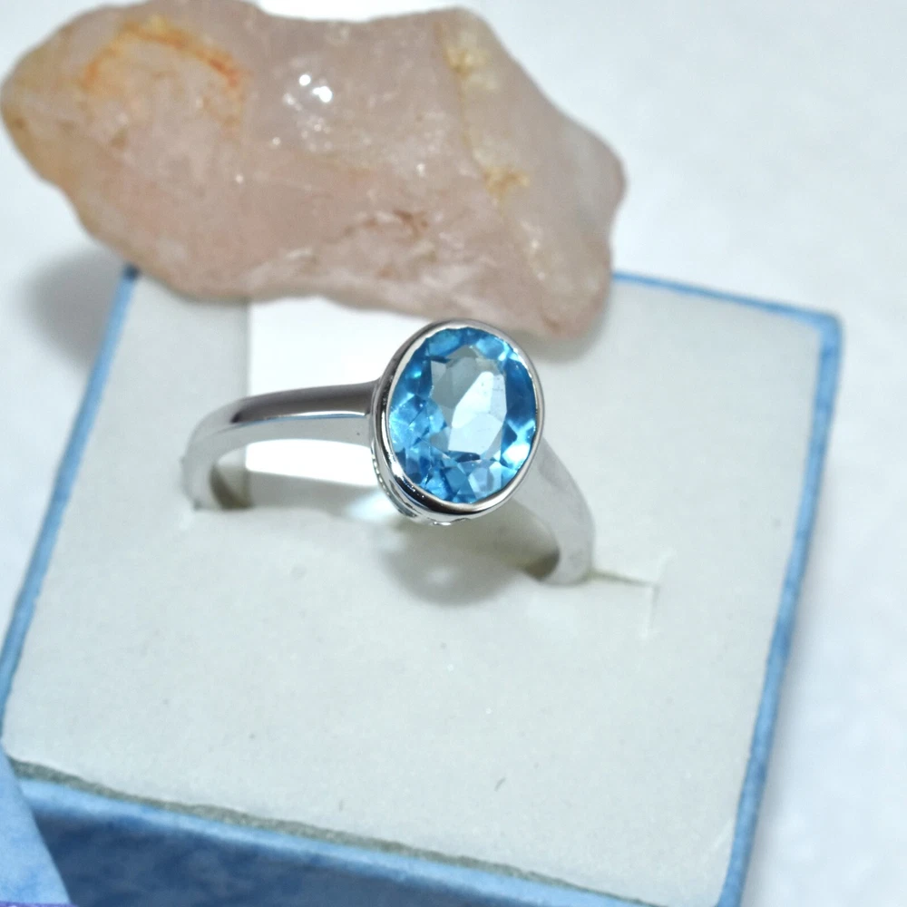 Brand:- ABHANER GEMS Gross Weight:- 2.551gm Gemstone:- Blue Topaz Gemstone Shape:- Oval Weight Of Gemstone :- 2.15ct Ring Size :- All Sizes Available Metal:- 925 Sterling Silver ( We also make in gold so please feel free ask us if you want) Order:- We Take custom And Bulk Orders PLEASE GIVE YOUR OPENION OR FEEDBACK ABOUT THE PRODUCT. Our first rule is to serve the costumer with best we can in the best way possible as we prefer to give the best quality at the most affordable price. Size:-All Size Available as we are factory people we can make any design in any shape with any gemstone you want all you have to do is just tell us what you want and we will serve you with the best we can. please remember we are small manufacturers so we give the best in best price because there is no middle man to cost you extra. Metal:- Most of our jewelry is in 14K , 18K some are also in White Gold and Yellow Gold. we can make make jewelry according to your need. Gemstone :- We use 100% Natural gems stone so you do not have to worry about fake stones. you can get it checked in any laboratory if it is not that we will give you 200% percent money back Making: - we are operating from Jaipur as we here are working from a very long time so we use traditional handmade ways to make most of our jewelry. COSTUMER SERVICE If You Have Any Problem Feel Free To Contact Us anytime you want as we are always here to serve you with the best we can It's a perfect gift for you and your loving ones it's quite comfortable for wearing and suitable for all occasions styles and ages. All the items in my shop are Made in our own factory, you can design your own jewelry and let me make it as your design, In addition, we can make special and meaningful jewelry for you. It is nicely made with love and passion for every buyer and we are proud of our products. SHIPPING INFORMATION All orders are shipped by us within 3-5 business days. as All the items in our shop is Made in our own factory therefore carefully and professionally made as per our Quality Standard, sometimes we need some extra time to produce an item as we believe in costumer satisfaction. Once ready, they will be shipped and we will make you available with the Online Tracking. Shipping takes around then 1-3 weeks to reach you. We will inform you once the item leaves so you can Track it. Each Item is Fully Insured in Transit so please do not worry about damage or loss. You are Covered. PAYMENT INFORMATION We accept all the available Payments for your convenience. Please contact us if you wish to Get a support or help.