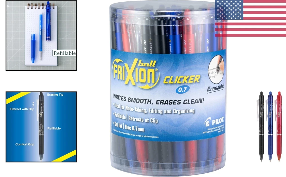Fine Point 0.7mm FriXion Clicker Gel Pens – 36 Pack, Effortless Erasing in Style ‹ › ‹ › ‹ › ‹ › ‹ › ‹ › ‹ › ‹ › Fine Point 0.7mm FriXion Clicker Gel Pens – 36 Pack Effortless Erasing in Style Features: Write, erase, and rewrite repeatedly without damaging your documents. Unique vibrant and smooth-flowing thermo-sensitive ink that disappears completely with erasing friction. Innovative retractable design allows you to click the pen tip in and out with a single gesture. Soft rubberized grip provides a comfortable writing experience even during prolonged use. Refillable with FriXion refills (sold separately), promoting sustainability and efficiency. Quick drying ink helps prevent smudges and keeps your documents pristine. Benefits: Stress-free writing that allows for corrections without mess or residue. Perfect for everyday tasks such as note-taking and organizing tasks with grocery lists. Highly versatile for creative projects including coloring, scrapbooking, sketching, drawing, and journaling. Powerful pen technology approved by STEM education organizations lends credibility to your work. Long-lasting, archival-safe, and acid-free ink keeps your writing vibrant and fade-resistant. Why Choose Our Fine Point FriXion Clicker Gel Pens? Unlock your creativity and enjoy the art of writing with our Fine Point 0.7mm FriXion Clicker Gel Pens. Designed for both practicality and elegance, these pens allow you to craft your thoughts without the fear of making mistakes. The unique thermo-sensitive ink is your secret weapon, ensuring that your work remains clean and refined, making it ideal for students, professionals, and artists alike. From carefully crafted notes to innovative designs, take control of your writing experience with precision and polish. Elevate your everyday writing with the power and style of 36 FriXion Clicker Pens designed to inspire endless possibilities. Order yours today and transform the way you express yourself! Shipping Free & Fast Shipping - We offer free shipping to most of the USA with a normal delivery time of 3-7 days. However, due to the current situation, additional delivery time (up to 3 weeks) may be required for some items. Alternative Carriers - We may use alternative carriers (e.g. USPS, FedEx, UPS, etc.) to ensure your package arrives safely and on time. Due to the use of multiple carriers, we are unable to provide a tracking number automatically. Handling Time - Orders are processed and shipped within 1-2 business days of receiving cleared payment. Shipping Restrictions - Shipping to Alaska, Hawaii, Puerto Rico, Guam, and other US territories may incur shipping charges or delivery restrictions. Please contact us before ordering, or your order can be refunded/cancelled. State Restrictions - There may be restrictions based on your state of purchase. For example, certain items may not be shipped to California due to state regulations. Contact for Tracking Updates - If you require tracking updates or have any concerns about the delivery of your order, please feel free to contact us, and we will be happy to assist you. Return 30-Day Hassle-Free Returns - We want you to be completely satisfied with your purchase. If you are not, you can return the item within 30 days of receiving it for a full refund or exchange. Easy Return Process - To start a return, simply contact us and we will provide you with a prepaid return shipping label and detailed instructions. Restocking Fee - There are no restocking fees for returns. However, the buyer is responsible for return shipping costs if the return is not due to a seller's error. Refund Processing Time - Refunds will be processed within 5 business days of receiving the returned item in its original condition. Payment We accept all major credit cards, PayPal, and Apple Pay for your convenience. Your payment information is secure and encrypted to ensure a safe and seamless transaction. Please complete your payment within 3 days of purchase to avoid any delays in shipping. Feedback Your feedback is extremely important to us. We strive to provide the best products and customer service possible. If you are satisfied with your purchase, please take a moment to leave us a positive review. If you have any concerns or issues with your order, please contact us before leaving negative feedback. We are committed to resolving any problems and ensuring your satisfaction. Contact Us If you have any questions or concerns, please feel free to reach out to our customer support team. You can contact us through the eBay messaging system. We are available Monday to Friday, 9:00 am to 5:00 pm EST, and we will do our best to respond to your inquiry within 24 hours. Buy it now and enjoy a pleasant shopping experience! UPC: Not Set Model: Erasable Gel Pens MPN: Erasable_Gel_Pens Sub-Type: Gel Pens Brand: Unbranded Country/Region of Manufacture: Not Set