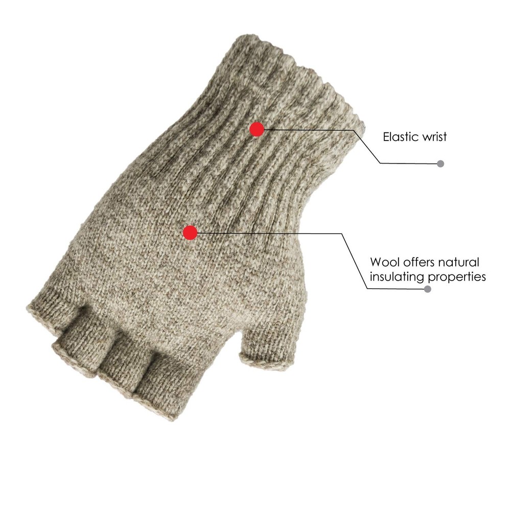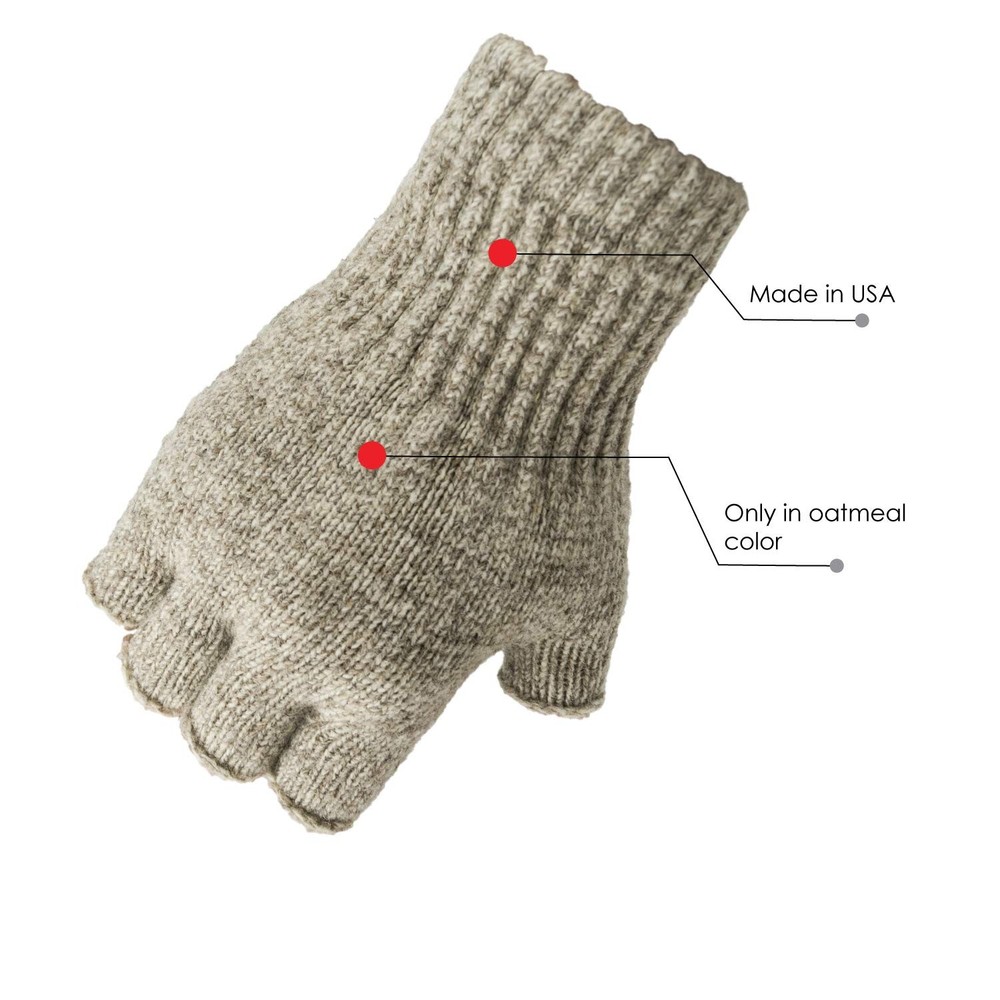 Fingerless Ragg Wool Gloves Made in the USA Style 351 (Beige Large) Made in USA Also available in Charcoal Style # 353 (see our other listing) Elastic wrist keeps out cold Great for walks & hikes Wool offers natural insulating properties Our new ragg wool gloves keep hands warm & toasty. Wool is great because it contains natural insulating properties and repels water. The elastic wrist keep out snow & debris. Available only in oatmeal color. Great for outdoor activities & events, walks and hikes Also available in Charcoal Style # 353 (see our other listing) Shipping We offer FREE shipping on all orders! We ship within Three business days of payment, usually sooner. We use a selection of shipping services such as UPS, FedEx, USPS etc. We only ship to the lower 48 states, no APO/FPO addresses or PO Boxes allowed. Local pickups and combined shipping options are not provided at this time. Return You can return a product for up to 30 days from the date you purchased it. Any product you return must be in the same condition you received it and in the original packaging. Please keep the receipt. Payment We accept payment by any of the following methods: PayPal Please pay as soon as possible after winning an auction, as that will allow us to post your item to you sooner! Feedback Customer satisfaction is very important to us. If you have any problem with your order, please contact us and we will do our best to make you satisfied. Contact Us If you have any queries, please contact us via ebay. We usually respond within 24 hours on weekdays. Please visit our eBay store to check out other items for sale! Thank you for shopping at our store.