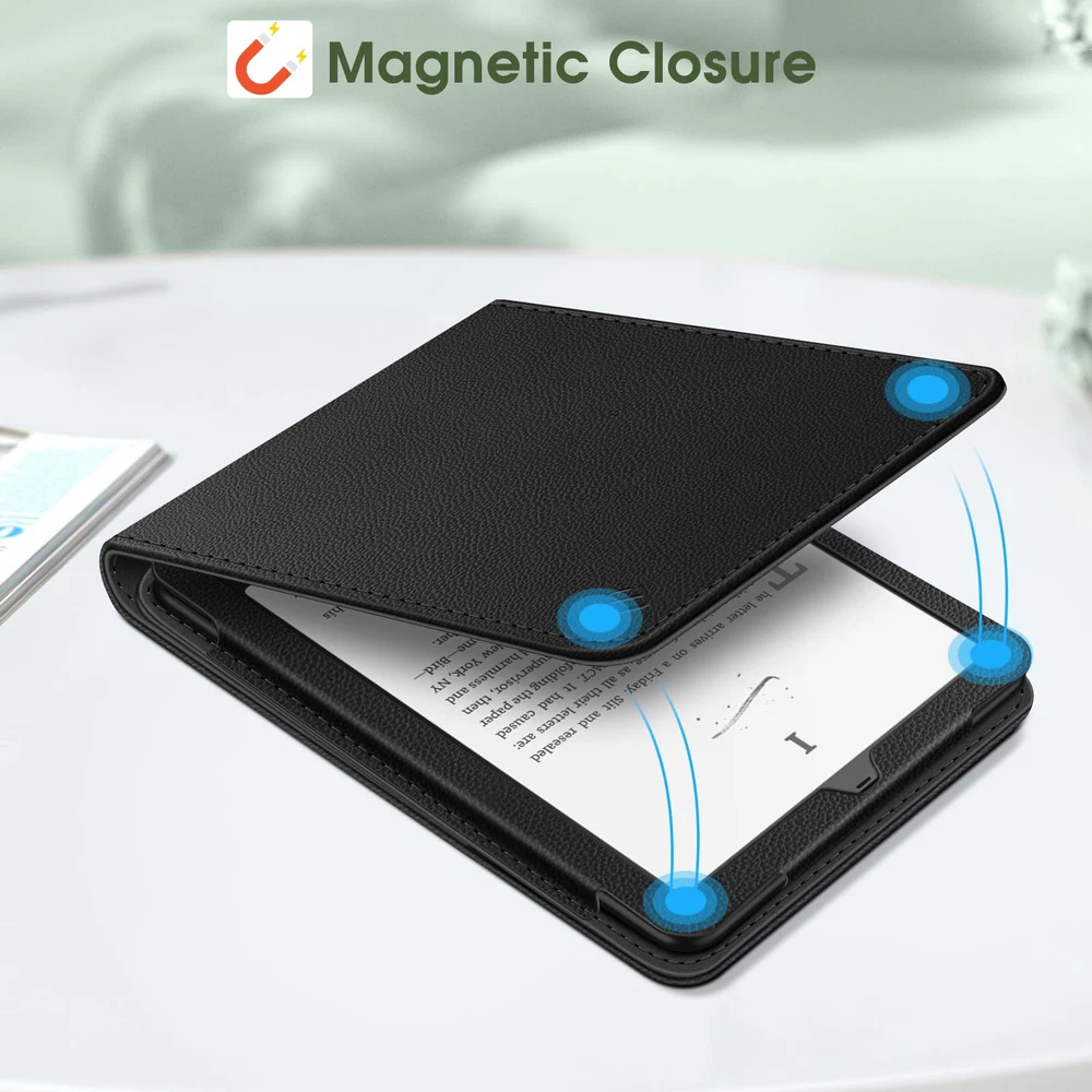 Compatibility: Designed exclusively for 7"/6.8" all-new Kindle Paperwhite(12th/11th Generation-2024/2021) and Kindle Colorsoft Signature Edition (2024 Release). Will not fit any other kindle devices Multiple Stand Angels: The unique designed with anti-slip straps allows you to adjust the kindle paperwhite 2024/2021 or kindle colorsoft signature edition eReader to multiple angles securely for hands-free reading. Enjoy your reading time with the most confortable angle Auto Sleep / Wake: Built-in magnetic strip provides auto sleep / wake feature, automatically wakes or puts your 7" kindle paperwhite 12th/11th generation or kindle colorsoft signature tablet to sleep, effectively saving power and extending the service life of the device Hassle-Free Access: Magnetic clasp ensures cover securely closed, secures your 2021/2024 kindle paperwhite eReader without straps covering the front. Precisely cut-out to provide easy access to all buttons, ports and features High Quality Materials: This case is made of premium PU leather with soft microfiber lining, which protect your precious kindle paperwhite 2024 /kindle colorsoft signature epaper from shocks, bumps and scuffs