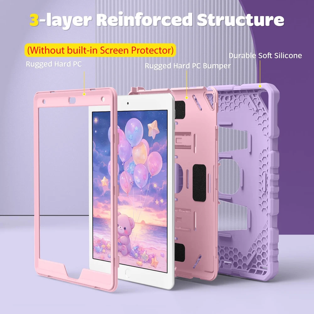 Fintie Case for iPad 9th Generation (2021) / 8th Generation (2020) / 7th Gen (2 Features: Specifically designed for iPad 9th Generation 2021 (A2602/A2603/A2604/A2605), iPad 8th Generation 2020 (A2270/A2428/A2429/A2430), iPad 7th Generation 2019 (Model Number: A2197/A2200/A2198) 10.2" Tablet. Safety Protection: Specifically designed with children in mind, providing comprehensive safety protection. This 3-layer shockproof heavy duty rugged protective case is made from flexible silicone and durable hard PC impact-resistant materials to effectively prevent accidental drops, bumps and falls. (Screen Protector is not included!) Reliable Stability: This innovative bracket ensures a stable and sturdy support for the iPad. It guarantees that it will not tilt or slide during use, providing reliable stability. Comfortable Viewing Angle: The kickstand is designed with a versatile angle adjustment function, allowing children to choose optimal vertical and horizontal positions (2 Modes) according to their preferences. Whether watching videos, playing games, or engaging in educational activities, they can enjoy the best visual experience. Easy to carry: Easy-to-grab bump design is more friendly to kids and students. Children can enjoy their iPad anytime, anywhere. Available in a variety of bright and fun colors, catering to children's preferences for personalization and style. Features: Specifically designed for iPad 9th Generation 2021 (A2602/A2603/A2604/A2605), iPad 8th Generation 2020 (A2270/A2428/A2429/A2430), iPad 7th Generation 2019 (Model Number: A2197/A2200/A2198) 10.2" Tablet. Safety Protection: Specifically designed with children in mind, providing comprehensive safety protection. This 3-layer shockproof heavy duty rugged protective case is made from flexible silicone and durable hard PC impact-resistant materials to effectively prevent accidental drops, bumps and falls. (Screen Protector is not included!) Reliable Stability: This innovative bracket ensures a stable and sturdy support for the iPad. It guarantees that it will not tilt or slide during use, providing reliable stability. Comfortable Viewing Angle: The kickstand is designed with a versatile angle adjustment function, allowing children to choose optimal vertical and horizontal positions (2 Modes) according to their preferences. Whether watching videos, playing games, or engaging in educational activities, they can enjoy the best visual experience. Easy to carry: Easy-to-grab bump design is more friendly to kids and students. Children can enjoy their iPad anytime, anywhere. Available in a variety of bright and fun colors, catering to children's preferences for personalization and style. eBay integration by