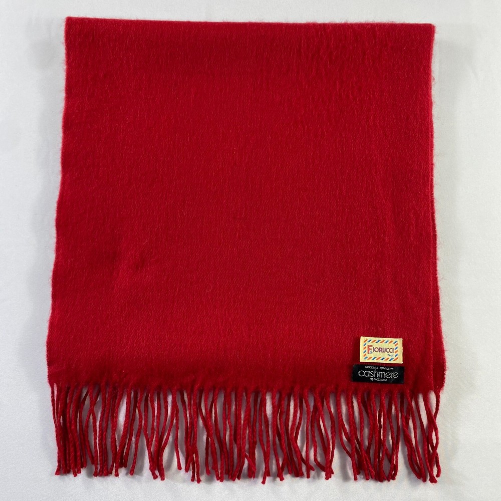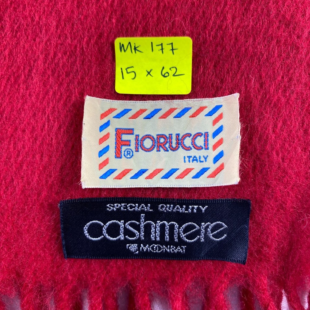 Brand: Fiorucci Handmade: No Garment Care: Dry Clean Only Department: Unisex Color: Red Fabric Type: Tweed Type: Scarf Vintage: No Item Width: 15 inches Item Length: 62 inches Personalize: No Season: Fall, Spring, Summer, Winter Country/Region of Manufacture: Japan Material: Cashmere, Wool Seller Notes: “This is used item, please don't expected it to be like "new" or in "pristine" condition, Thank You.” Character: Hippie, Skater Girl, None Accents: Crochet, Embroidered, Fringe, Fur Trim, Logo Style: Square Scarf Character Family: None MPN: Does Not Apply Pattern: Solid Features: Multifunctional Theme: Art, Bohemian, Christmas, City, College, Countries, Festival, Flower, Geek, Gothic, Grunge, Hippie, Hipster, Holiday, London, Love, Motorcycle, Music, Punk, Retro, Rock, School, Ski, TV, USA, Designer