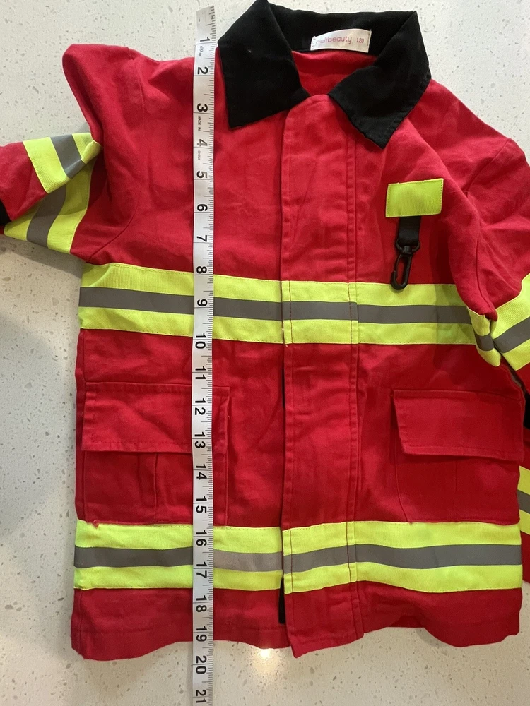 Get ready to save the day with this stunning Fire Fighter Costume Jacket from Relibeauty 120. Made with high-quality materials, this jacket is perfect for any young boy who wants to dress up and play the part of a brave fireman. The bright orange color adds a pop of vibrancy to any costume collection, and the jacket's style is sure to impress. With a size of 7-8, this jacket is perfect for boys of that age range. Whether you're putting together a costume for a play or just want to add to your collection, this Fire Fighter Costume Jacket is a must-have. So why wait? Order yours today and become the ultimate fireman! This item is in great condition. The exact sizing isn’t listed so please see photos with measurements. From a smoke-free home.