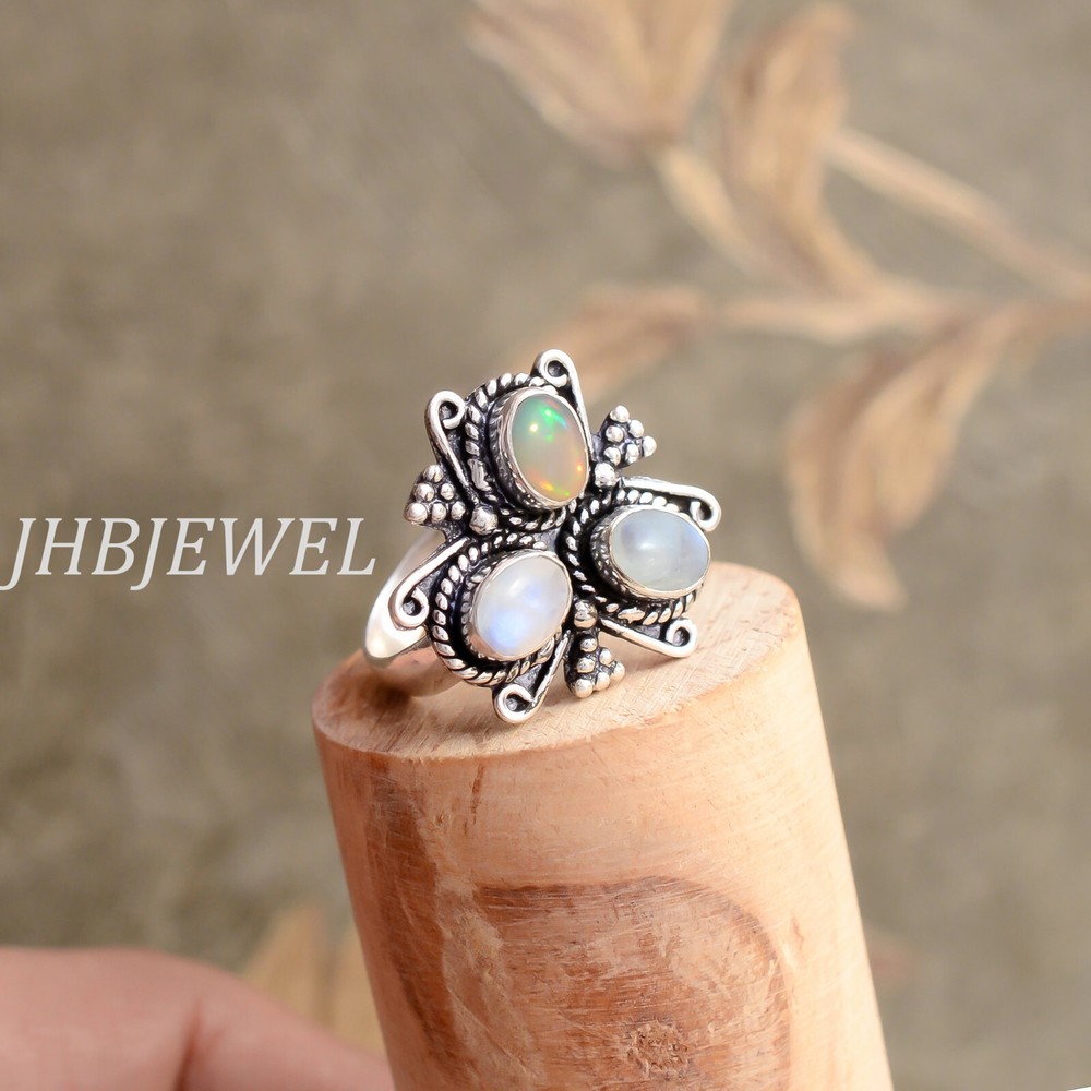 Welcome to jhbjewel Rainbow Moonstone & Fire Opal Gemstone 925 Sterling Silver Ring For Family Gift Payment Methods: We accept payments only by Payoneer and E-bay .Using this feature you can instantly pay by your credit card or from your PayPal balance. As this is a transaction service provided by eBay, you are assured for complete security in online payments. We will never know your credit card information. Payment should be made within 10 days since the winning of the first item. Non-paying winners will be reported to eBay. Serious bidders only please. Please email us with any questions you may have during the transaction. Shipping Information: US Shipping : $free Shipping International: $free Shipping Shipping & Delivery Time: We ship within 1-3 business days after payment is received. Delivery is generally within 15 TO 20 DAYS worldwide after shipping. We provide you each item is individually packed securely with quality products to help ensure safe and undamaged delivery. Packages are shipped via Registered International Air Mail. In rare cases it makes take up to 4 weeks for delivery depending up on the destinations and customs in your country. All packages have a fully filled customs declaration form in order to avoid any delay in customs. Returns Policy We want you to be100%satisfied with our products and our service. Your satisfaction is our priority. That's why we offer a simple 30days Money-Back Guarantee. If you are not completely satisfied with the purchase, simply send it back to us within 30 days of receiving it and we will issue you a full refund for your purchase - No Questions Asked! Return shipping charges are not reimbursable. Please contact us if you would like to in itiatea return, so that we may guide you through the process. We can be reached through the "Ask a question" link on the listing. All items must be in their original condition as received, not worn or altered. Product Pictures: All jewelry photos are taken by professional photographers. They use many photo equipment, like Flash, Day Light and etc. Some of the stone color might have effected a little. (Example: An amethyst stone is dark purple color, under the flash and lights it might affect the color a little and its hows little light purple instead of dark purple.) If you bring the jewelry outside under the sunshine you will see the same piece showing under the daylight. Please also note we have tried to keep the images as accurate as possible; however there might be some color variations in the images published on our store and the real product due to light effects & photography. FEEDBACK: Feedback DSRs (Detailed Seller Ratings). We want to earn your good feedback and 5 stars DSR rating. Unfortunately, 4 stars are considered a bad rating for sellers and can resulting restrictions on our account. Please help us maintain our business and give a 5-Star rating in all 4categories. We strive for 100% Customer Satisfaction and weal ways leave positive feed backs to our buyers. Our feedback and DSRs are extremely important to us as better DSR scores affect our search placement on eBay. If you still think that you still can? t leave a 5-Star across the Board, please email us or call us and we assure you that your issue will be resolved immediately. Sincerely, jhbjewel