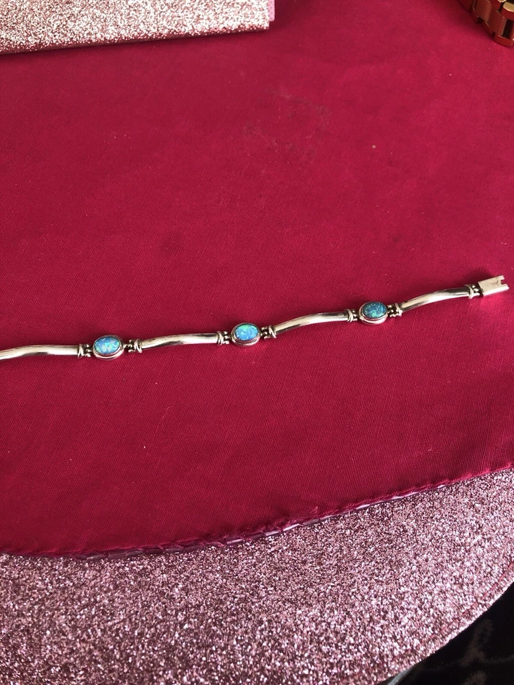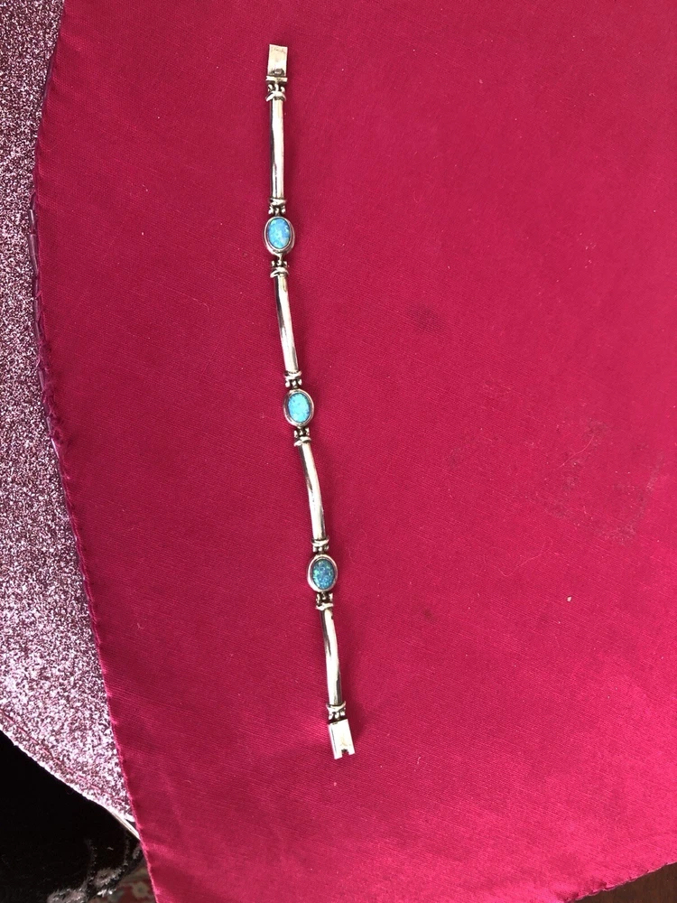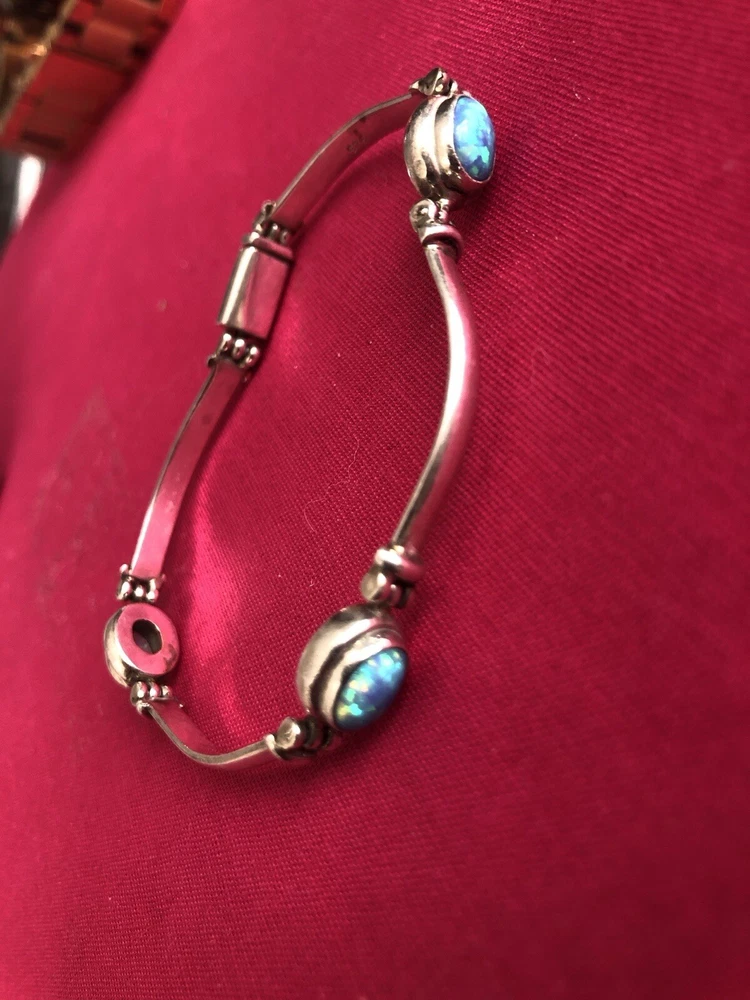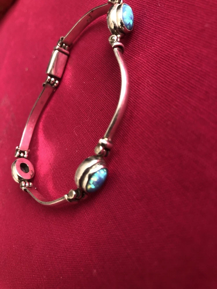Material:GemstoneMain Stone Treatment:Not EnhancedStyle:BeadedType:BraceletCountry/Region of Manufacture:IndiaBase Metal:SilverNumber of Gemstones:5Color:BlueHandmade:YesMetal Purity:925Main Stone Creation:NaturalMetal:Sterling SilverChain Type:Bar LinkMain Stone:Fire OpalBrand:Unbranded