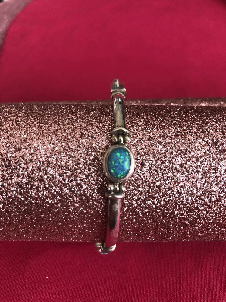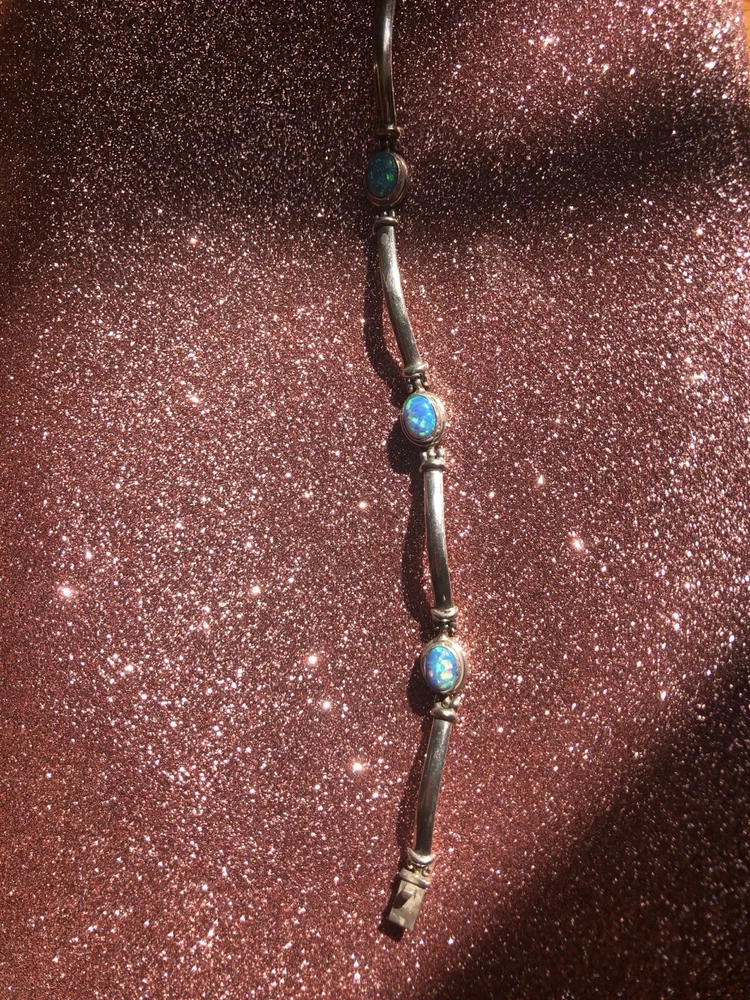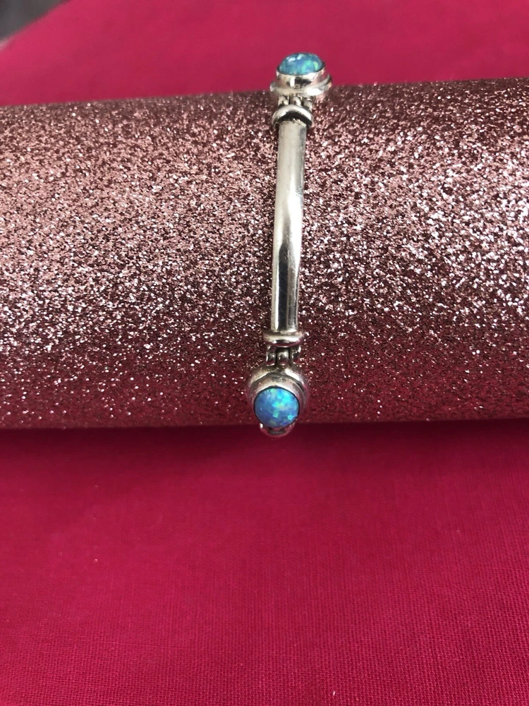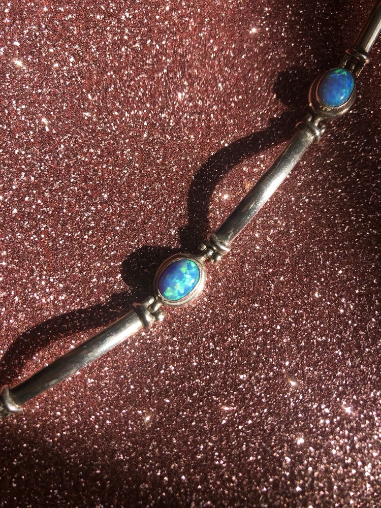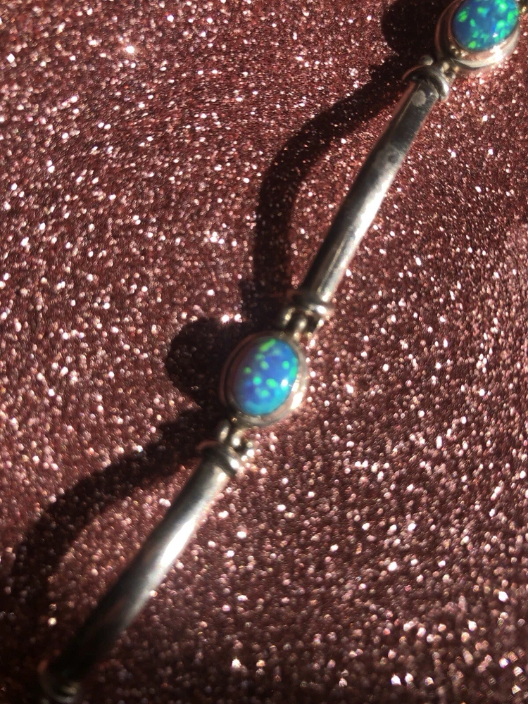 Material:GemstoneMain Stone Treatment:Not EnhancedStyle:BeadedType:BraceletCountry/Region of Manufacture:IndiaBase Metal:SilverNumber of Gemstones:5Color:BlueHandmade:YesMetal Purity:925Main Stone Creation:NaturalMetal:Sterling SilverChain Type:Bar LinkMain Stone:Fire OpalBrand:Unbranded