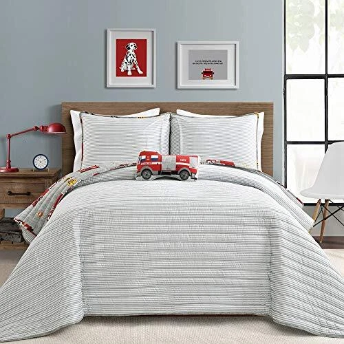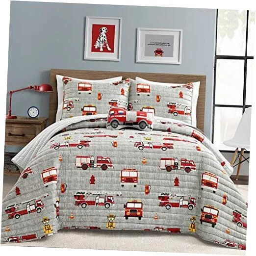 Return Policy Fast Delivery Trusted seller Fire Truck Quilt 4 Piece Set, Full/ Queen, Red & Gray - Reversible Stripe Print Bedding Set for Kids Room Product Description 100% Polyester Every 34 minutes in the U.S., a child with a critical illness will receive a life-changing wish. Now -- with your help -- we can help bring those wishes to life. 5% of your purchase of Make-A-Wish Collection by PB&J goes towards making a child’s wish come true. A wish come true helps children feel stronger, more energetic, more willing and able to battle their critical illnesses. For many, the wish marks a turning point in the fight against their illnesses. Doctors, nurses and other health professionals say, the wish experience works in concert with medicine to make their patients feel better emotionally and even physically. That is why wishes matter. A Wish is something that gives kids the opportunity to look outside their illness — it restores a sense of childhood back to the child and normalcy back to the family. 4-Piece 100% Polyester Reversible Print Set Includes: 1 Full/Queen Quilt, 2 Pillow Sham and 1 Decorative Pillow. Machine Wash Cold, With Similar Colors, Gentle Cycle. Use Only Non-Chlorine Bleach When Needed. Tumble Dry Low, Light Iron If Needed. Shipping Returns Payment Shipping Shipping is FREE to all addresses other than APO/PO boxes in the lower 48 states. All our stock ships from US-based warehouses. Shipped via USPS or UPS (depending on location and package weight) Unless stated otherwise, all orders will ship within 24-72 hours of your payment being processed. Check our feedback to see the great reviews of FAST shipping we offer. Returns Seller does not accept returns Payment We currently accept payment via eBay managed payments only. Once payment is cleared, we will dispatch your shipment within 1-3 business days. Please refer to the "Shipping" tab for more information regarding shipping speed to your destination.