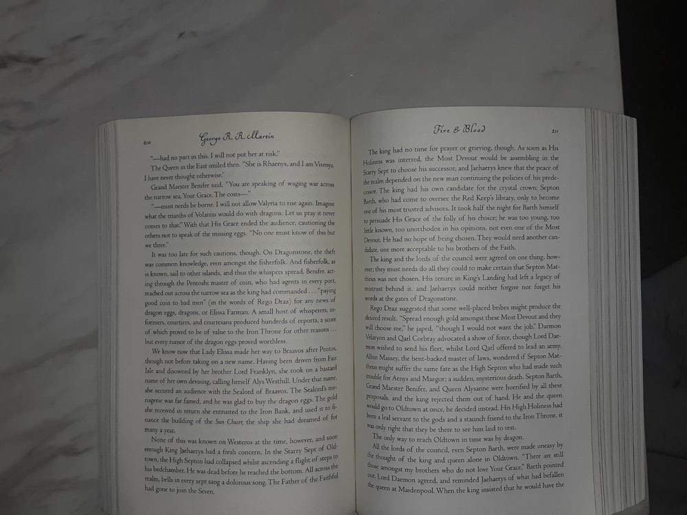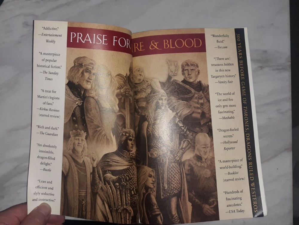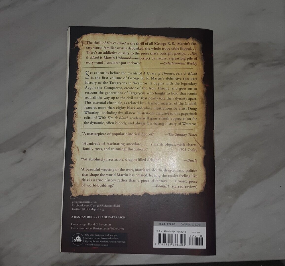 Selling all of our Game of Thrones Books, I have already listed our 5 Book Collection of A Game Of Thrones, A Clash Of Kings, A Feast For Crows, and A Dance With Dragons. Now I will also be listing A knight of The Seven Kingdoms and this book Fire & Blood. None of these books have any damages or deterioration of pages.