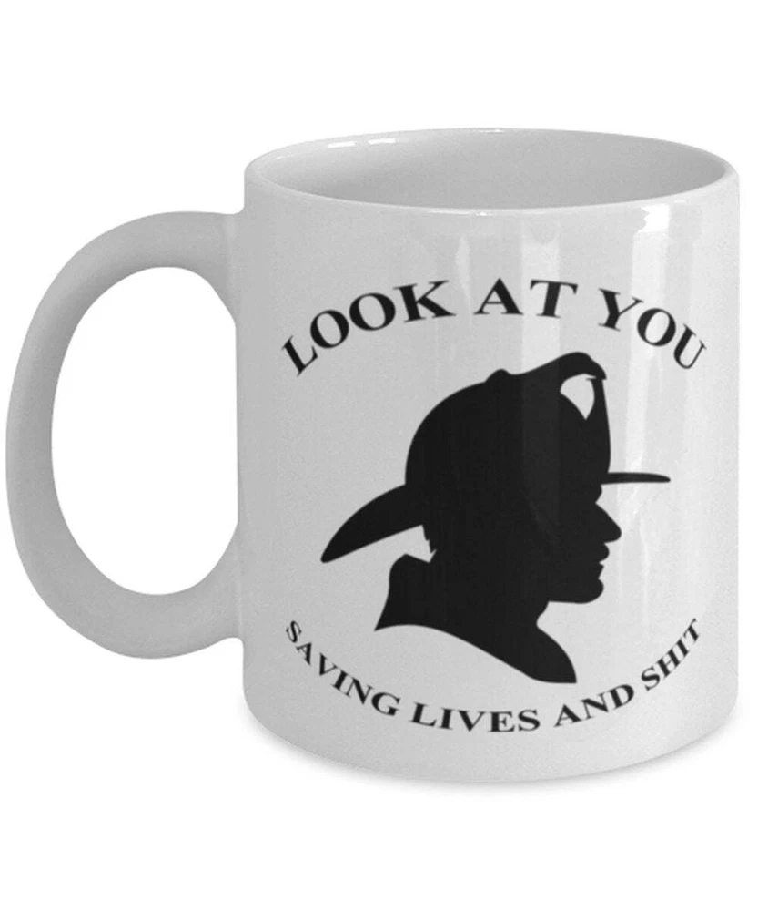Firefighter Funny Coffee Mug Look At You Saving Lives And Sh!t - White Mug Product Details.. This high quality 11oz. ceramic white mug has a premium hard coat that provides crisp and vibrant color reproduction sure to last for years. Perfect for all hot & cold beverages. The highest quality printing possible is used. It will never fade no matter how many times you wash it. Material: 100% Ceramic. Print both sides. Dishwasher and Microwave Safe. High Gloss + Premium White Finish. Printed in the U.S.A. Personalized & Custom. We support personalized and custom mug to add custom, when placing an order, you can add notes to the "order note" in shipping address section. Also you can contact us directly via message. Shipping Info. Ready to ship in 1 to 2 business days, All products are made-to-order and proudly printed in the United States. Shipped by USPS and DHL, You will receive your order in 5-7 days. Replace & Refund. All products are defective during shipping broken, chipped will be replaced free of charge. You are not satisfied with the product, we will refund 100% money to you. If any other issues arise, please do not hesitate to message, we would be more than happy to assist you.
