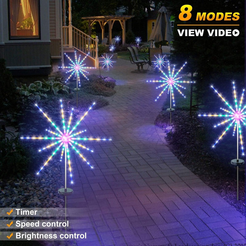 Firework Meteor Lights 2 Pack Outdoor Solar Garden Decorative Starry Starburst