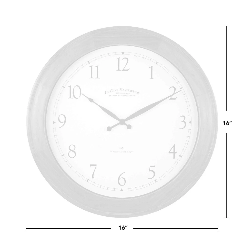 Nothing ties a room together better than a great clock, and the you choose to place in your home should reflect your personality and style. We hear you. Our FirsTime & Co. Brown Garrison Whisper Wall Clock will bring a timeless and classic appeal to any home or office. Crafted of solid wood with a brown stained finish, this elegant timepiece has a 16 inch diameter with black hands and numerals, making it a small yet stylish piece. For fans of silent clocks, this wall clock features our Whisper Technology to ensure there is no audible ticking sound. Finding the right clock to suit your style has never been easier thanks to our wide range of FirsTime & Co. timekeeping solutions. SIZE MATTERS – Our FirsTime & Co. Brown Garrison Whisper Wall Clock has a 16” diameter and 2” depth, making it a great size for any space. IT'S IN THE DETAILS - This round clock is crafted of solid wood with a glass lens, ivory face, black hands and numerals, and a brown stained finish. It also features our Whisper Technology, so there is no audible ticking sound. HANG IN THERE – This clock is designed to be hung on the wall. Hanging hardware is not included. START IT UP – This clock requires 1 AA battery for operation, not included. TRADITIONAL STYLE - Whether moving into a new home or looking for a gift, make an accent statement in your entryway, kitchen, living room or bathroom with a stylish and decorative traditional piece from FirsTime & Co.