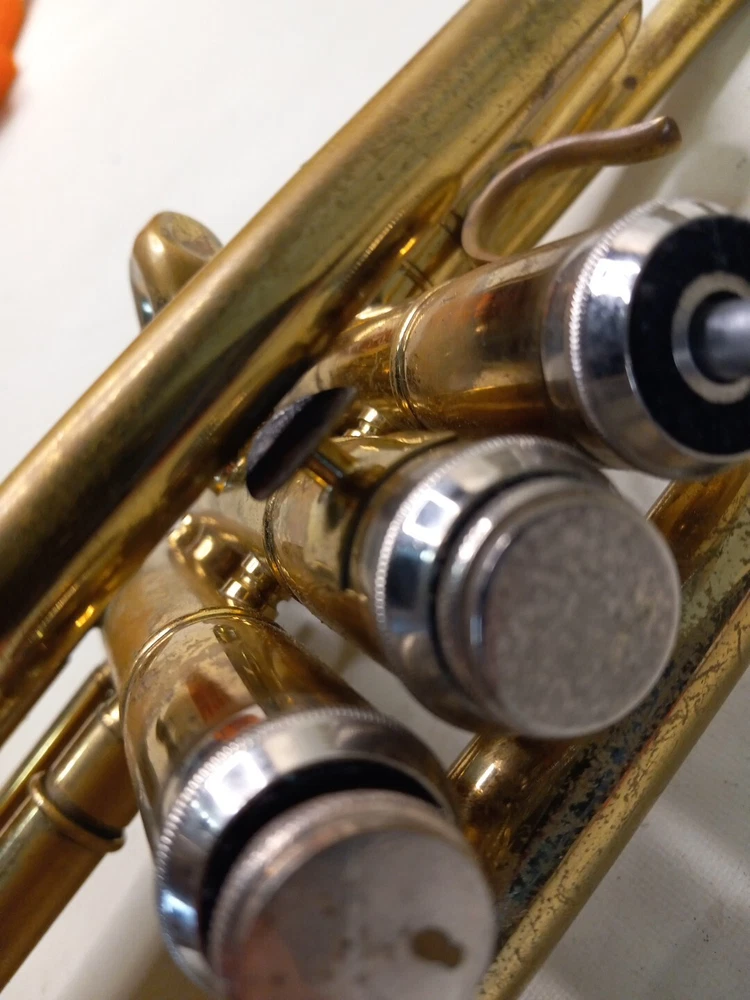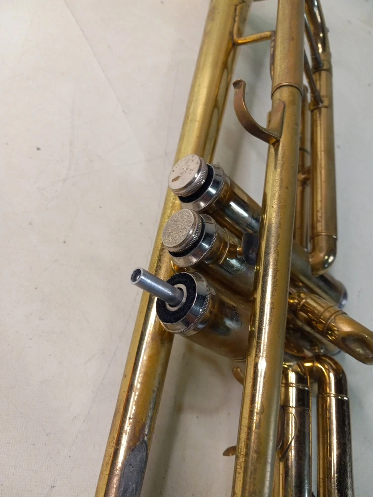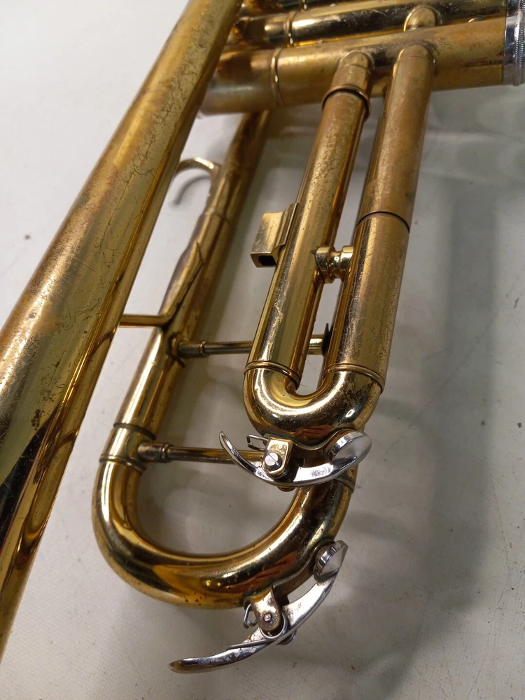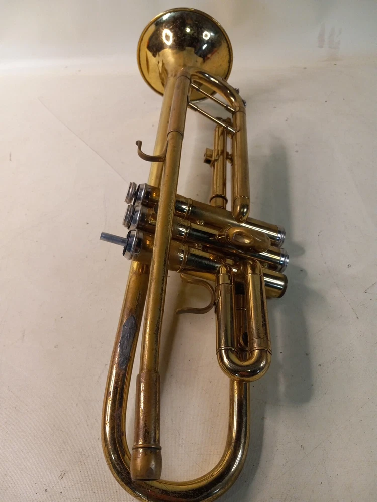Has dents and welds broke loose. No Mouth Piece. Pistons need help. Possible other issues.
