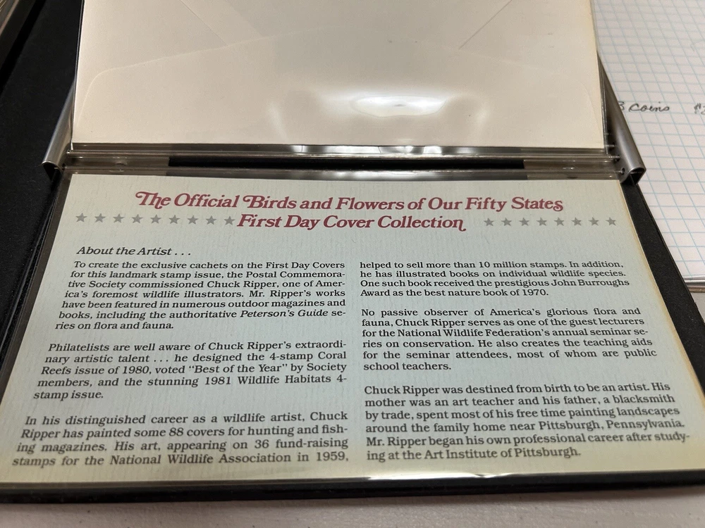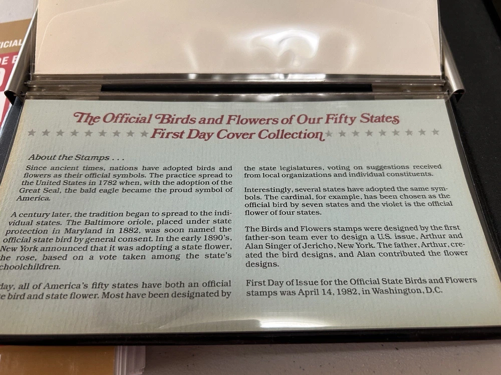 Add a unique touch to your stamp collection with this incredible set of 50 First Day covers featuring birds and flowers from the United States. Each cover is canceled with a First Day of Issue stamp and comes uncertified, making them an affordable addition to your collection. The multi-color 20 cent stamps, depict beautiful flowers and birds from different states of the United States. This set is perfect for collectors who enjoy adding unique and diverse items to their collection. The covers were manufactured in the United States and are a great representation of the country's natural beauty. Don't miss the chance to own this one-of-a-kind set that will surely impress any stamp collector.