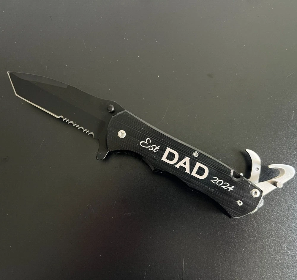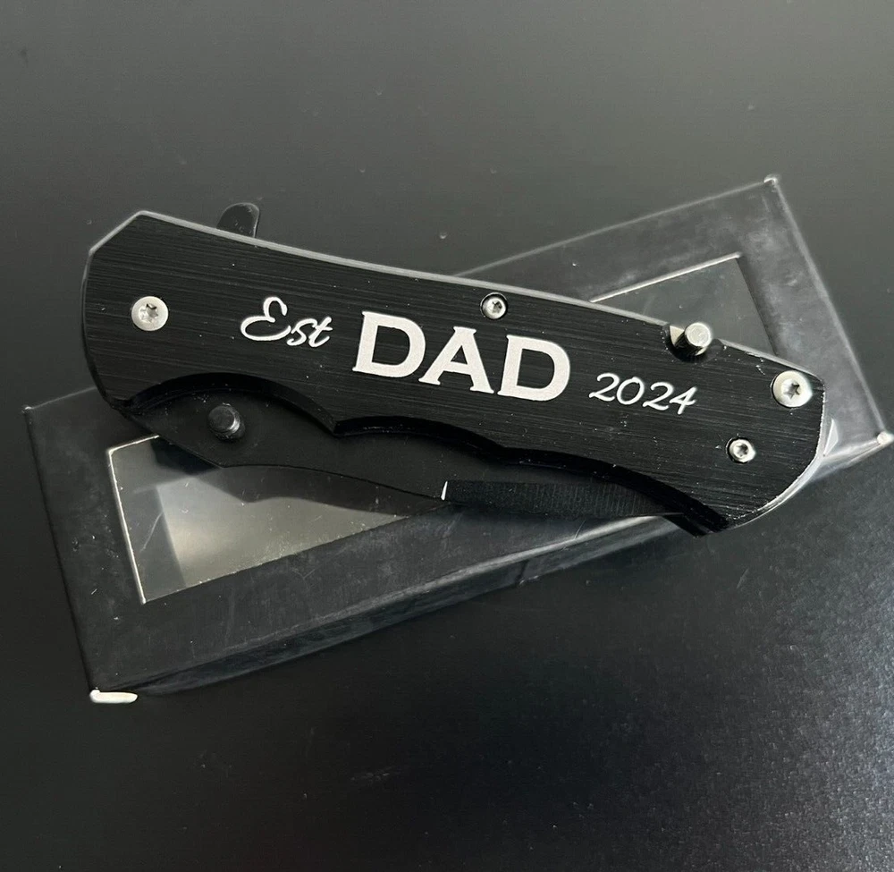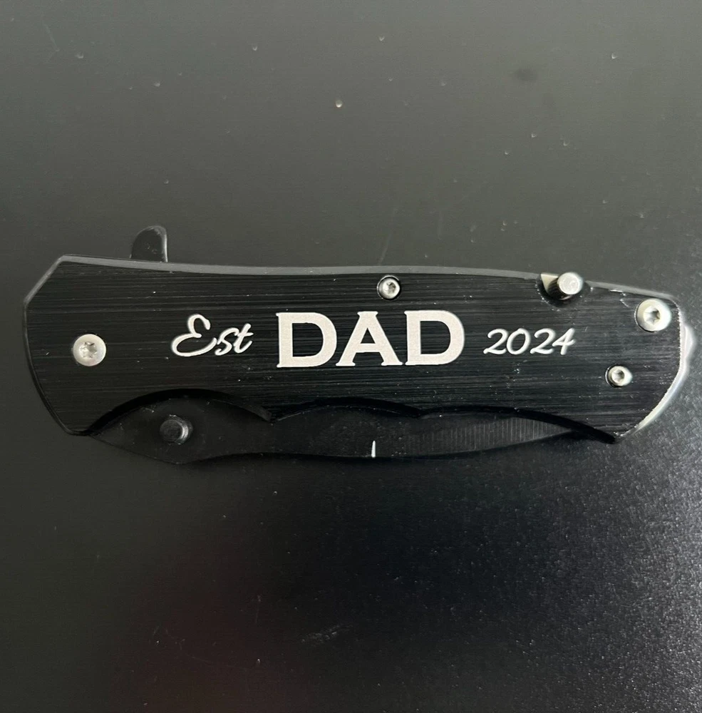 First Fathers Day Gift 2024 - Daddy Gift - Dad Est 2024 . Condition: NEW. 8" opened length, 4.75" closed length, 3.25" blade length. Strong STAINLESS STEEL 3MM Thick Blade. Good for Hunting, Fishing, Camping, Outdoor, Hiking, Emergency, Work, Utility use and DIY Activities. M ultiFunction tool: not just a knife, it also can be an emergency glass breaker and durable rope cutter. I do my best to ship same day, but all packages are handled within 1-2 business days. ๐ Disclaimer ๐ Must be 18 Years or Older to Purchase it, Check your local City and State law before purchasing it.