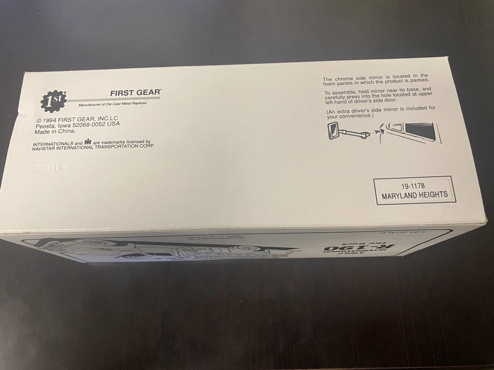 gtin13:Does not applyUPC:Does not applyScale:1:34Vehicle Type:Fire VehicleBrand:First GearRecommended Age Range:Recommended For Ages 10 And OverCustom Bundle:NoColor:RedMPN:19-1178Vehicle Year:1957Country/Region of Manufacture:ChinaTheme:Maryland Heights Fire Co.Year of Manufacture:1994Material:DiecastVehicle Make:InternationalModified Item:NoGender:Boys & GirlsFeatures:Advertising Specimen, Unopened Box, Precision CollectibleNon-Domestic Product:NoModel:International R-190
