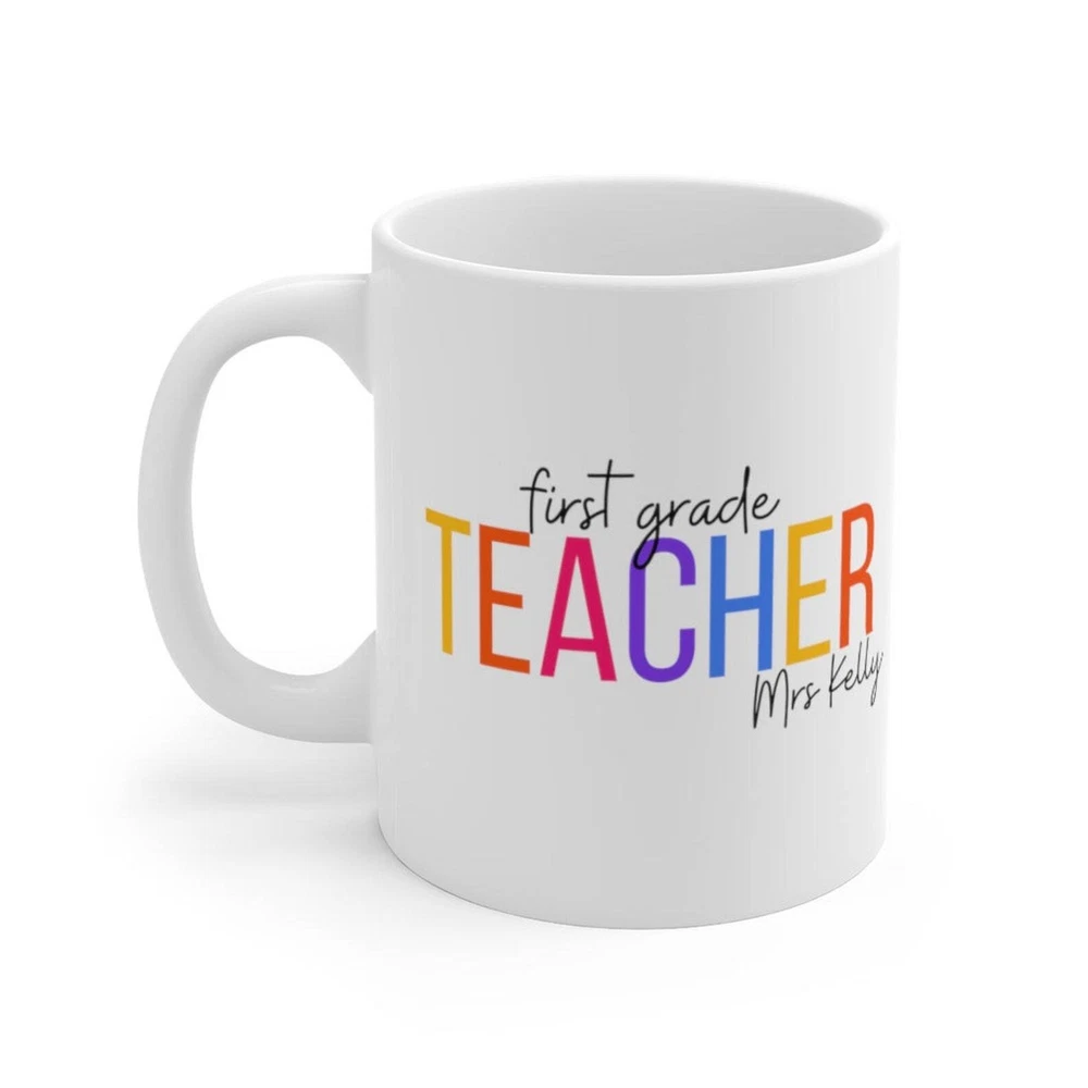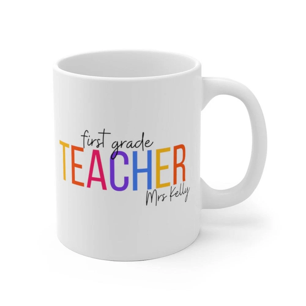 First Grade Personalized Teacher Mug Rainbow Graduation Gifts For Teacher Customised Teacher Coffee Tea Mug Gift For Back To School Product Details.. This high quality 11oz. ceramic white mug has a premium hard coat that provides crisp and vibrant color reproduction sure to last for years. Perfect for all hot & cold beverages. The highest quality printing possible is used. It will never fade no matter how many times you wash it. Material: 100% Ceramic. Print both sides. Dishwasher and Microwave Safe. High Gloss + Premium White Finish. Printed in the U.S.A. Personalized & Custom. We support personalized and custom mug to add custom, when placing an order, you can add notes to the "order note" in shipping address section. Also you can contact us directly via message. Shipping Info. Ready to ship in 1 to 2 business days, All products are made-to-order and proudly printed in the United States. Shipped by USPS and DHL, You will receive your order in 5-7 days. Replace & Refund. All products are defective during shipping broken, chipped will be replaced free of charge. You are not satisfied with the product, we will refund 100% money to you. If any other issues arise, please do not hesitate to message, we would be more than happy to assist you.