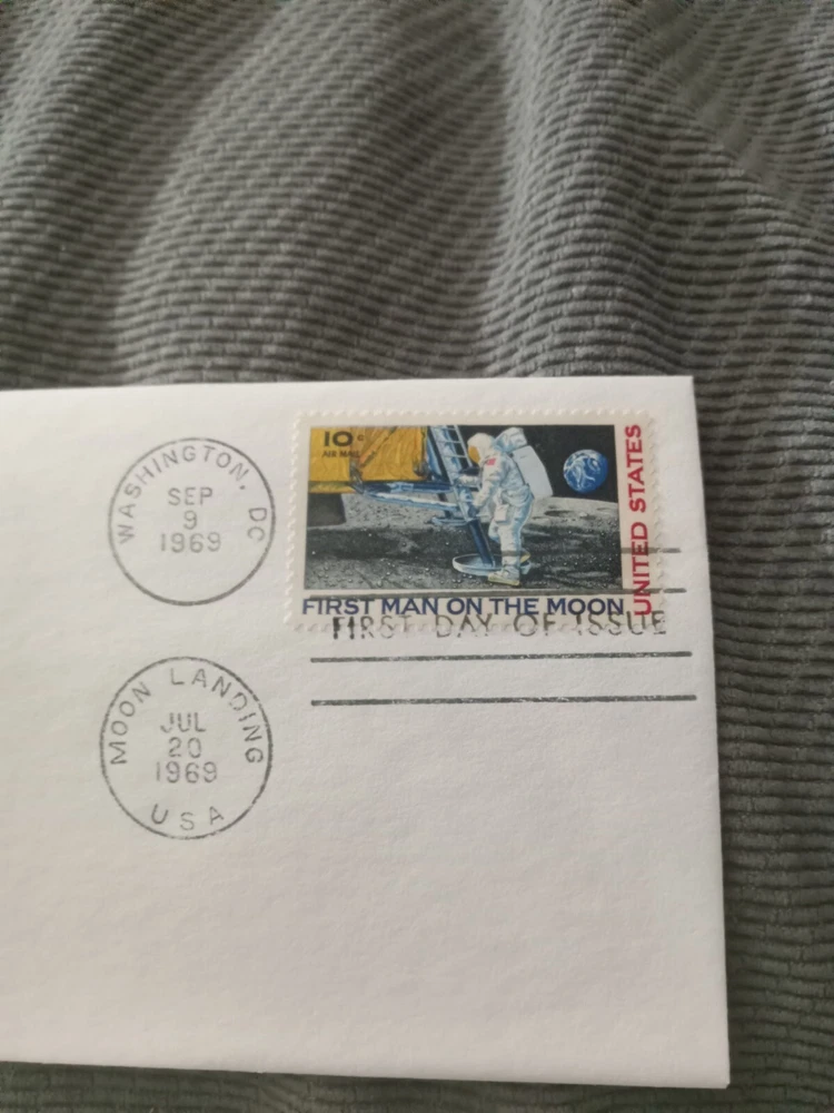 First Man On The Moon 10 Cent Stamp First Day Of Issure And Collectors Envelope