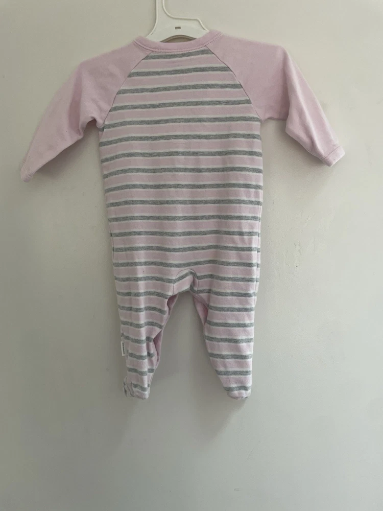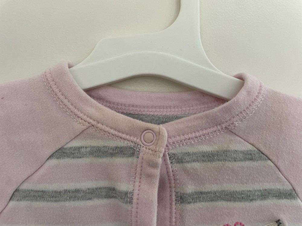 First Moments Baby Girl Cute Giraffe Striped Cotton Long Sleeve 1-Piece Pink 6-9. In pre-owned condition. From a smoke free, pet free home. Shipped via USPS Ground Advantage. In good condition. There are light stains on the front and sleeve. Free of rips.