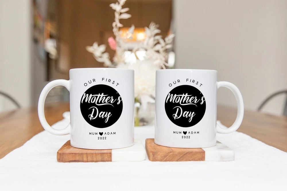 First Mother's Day Mug Father's Day Gift Mug For New Mum Dad Mum Mug Product Details.. This high quality 11oz. ceramic white mug has a premium hard coat that provides crisp and vibrant color reproduction sure to last for years. Perfect for all hot & cold beverages. The highest quality printing possible is used. It will never fade no matter how many times you wash it. Material: 100% Ceramic. Print both sides. Dishwasher and Microwave Safe. High Gloss + Premium White Finish. Printed in the U.S.A. Personalized & Custom. We support personalized and custom mug to add custom, when placing an order, you can add notes to the "order note" in shipping address section. Also you can contact us directly via message. Shipping Info. Ready to ship in 1 to 2 business days, All products are made-to-order and proudly printed in the United States. Shipped by USPS and DHL, You will receive your order in 5-7 days. Replace & Refund. All products are defective during shipping broken, chipped will be replaced free of charge. You are not satisfied with the product, we will refund 100% money to you. If any other issues arise, please do not hesitate to message, we would be more than happy to assist you.