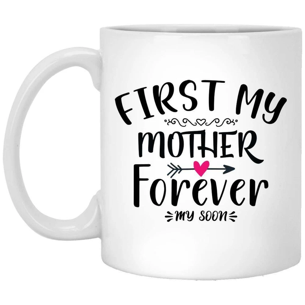 First My Mother Forever My Soon Ceramic Coffee Mug Funny Novelty Coffee Cup Gift Product Details.. This high quality 11oz. ceramic white mug has a premium hard coat that provides crisp and vibrant color reproduction sure to last for years. Perfect for all hot & cold beverages. The highest quality printing possible is used. It will never fade no matter how many times you wash it. Material: 100% Ceramic. Print both sides. Dishwasher and Microwave Safe. High Gloss + Premium White Finish. Printed in the U.S.A. Personalized & Custom. We support personalized and custom mug to add custom, when placing an order, you can add notes to the "order note" in shipping address section. Also you can contact us directly via message. Shipping Info. Ready to ship in 1 to 2 business days, All products are made-to-order and proudly printed in the United States. Shipped by USPS and DHL, You will receive your order in 5-7 days. Replace & Refund. All products are defective during shipping broken, chipped will be replaced free of charge. You are not satisfied with the product, we will refund 100% money to you. If any other issues arise, please do not hesitate to message, we would be more than happy to assist you.