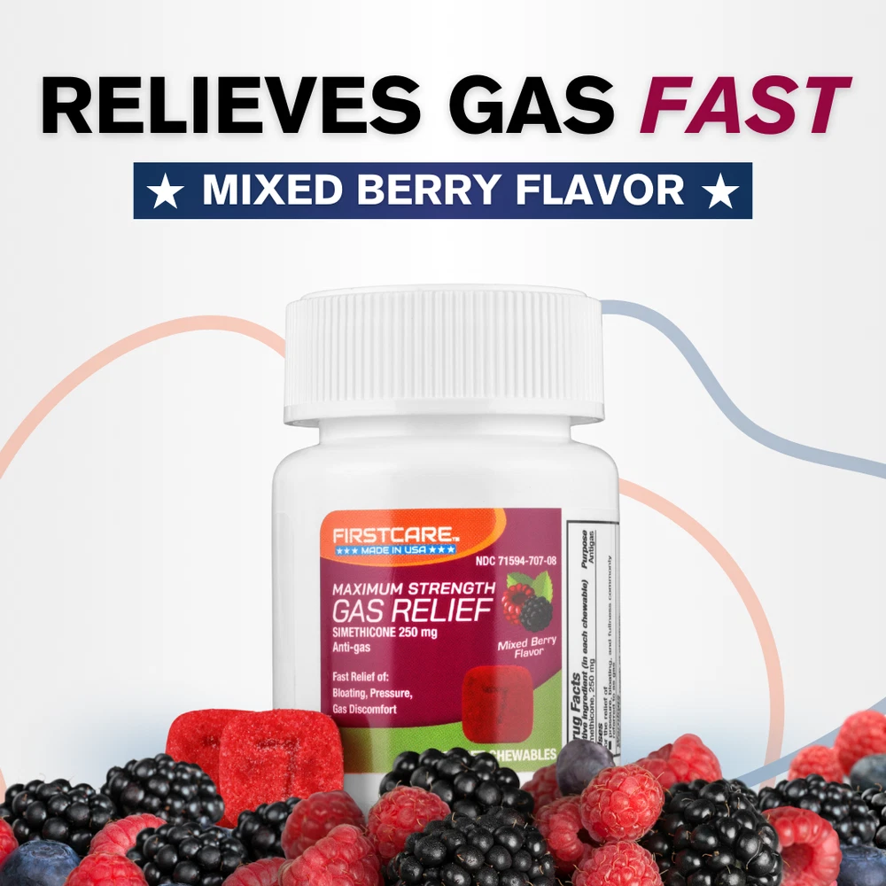 FirstCare® Gas Relief Soft Chewables (20 Count) Fast Relief of Bloating, Excess Pressure, & Gas Discomfort Simethicone 250 mg | Anti-Gas Chewable Medicine ABOUT THIS ITEM ✔️【 A Quick Remedy to Help Combat Gas and Bloating 】 - Works quickly to ease painful pressure, cramping, and discomfort caused by excess stomach and intestinal gas. Just 1-2 doses after meals provide rapid relief, helping you enjoy a less bloated belly. ✔️【 Keep Gas Issues to a Minimum After Meals 】 - Helps relieve gas buildup, fullness after eating, and stomach discomfort from excess gas. Perfect for those with dairy or gluten sensitivities or who consume a lot of fiber, veggies, and gassy foods. ✔️【 Great to Have On-Hand for Gas Troubles 】 - Small, convenient bottle that's easy to carry and doesn’t require water. Perfect for travel and quick, mess-free relief wherever you go. Be prepared for unexpected gas issues anytime, anywhere. ✔️【 A Chewable Solution for Gas, Bloating & Pressure 】- This easy-to-take chewable med is ideal for those who want to avoid pills. Each dose contains 250 mg of Simethicone to break up gas bubbles, providing quick relief from gas, bloating, pressure, and discomfort. ✔️【 Proudly Made in the USA 】- This OTC anti-gas solution is made in the USA, produced without animal by-products or preservatives, and is non-GMO certified. These anti gas and bloating chews are suitable for adults and children 12 years of age or older. CONTACT US Your satisfaction is our top priority, and we are dedicated to providing you with excellent customer service and are always available to assist you with any questions, comments, or product requests. Our team is easily accessible via eBay messaging on weekdays. SHIPPING POLICY 🚚 Enjoy FREE SHIPPING On All U.S. Orders via USPS First Class & Priority Mail and UPS ! No Minimum. All orders are processed within 2-3 business days (Monday to Friday). Please keep in mind that we do not process or ship orders on WEEKENDS or HOLIDAYS . RETURN POLICY We have a 30-day return policy if you are not completely satisfied with the product. Return shipping is the BUYER'S RESPONSIBILITY unless the return is the result of our error.