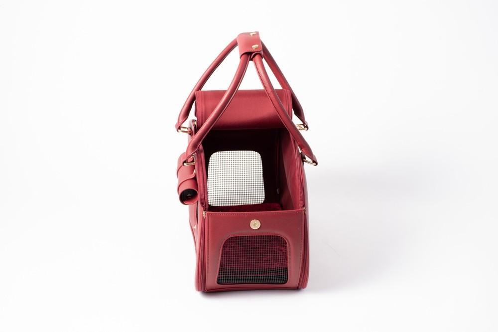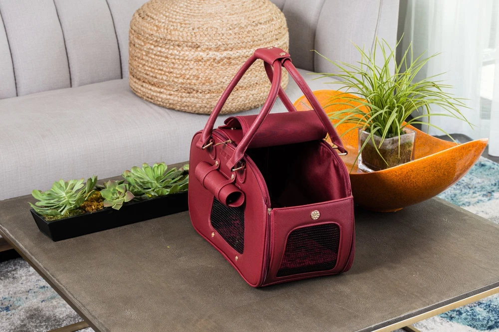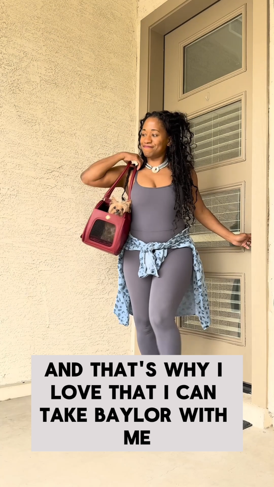 About this item Breathable - First-class carrier pet bag is designed for breathability. Large front and side open mesh allow air to flow easily and your dog to breathe comfortably in the carrier. Airline approved - Approved by TSA as a compliant soft-sided carrier to take you puppy on board. Fits snuggly under airline seating letting your pup sit comfortably to their destination Easy to clean - Keep your carrier clean as new with ease. Use a damp wash cloth to wipe away any stain on the carrier’s exterior. With high quality material that is already stain-resistant keeping your bag clean as new is a breeze Made with quality - Extra strong zippers, handles and attachments. Every detail of this bag is meticulous and designed to last. From gold accents that don’t fade, button snaps that clasp shut, quality stitching that don’t leave loose threads Safety latch - Secure your pooch in the carrier with the built-in safety attachment. It hooks loosely on the collar, making sure they are secured to the bag while being able to move and turn comfortably Weight limit - Ideal for dogs 5-10 pounds. The carrier can fit dogs over 10 pounds but we recommend this limit to give them room to sit, lay or turn around comfortably in the carrier Dimension: 16"L x 8"W x 10"H Is it Airline Approved? Yes, this carrier is a TSA approved soft-sided pet carrier. What is it made from? The interior is made from polyester with leatherette on the outside, it's 100% non-toxic. How do I clean it when dirty? Do not machine wash. Use a damp cloth to wipe away spots or blemishes to preserve the it's longevity. Jennifer - ⭐️⭐️⭐️⭐️⭐️ Great bag! It's so convenient for when I travel, I love taking babba with me everywhere!