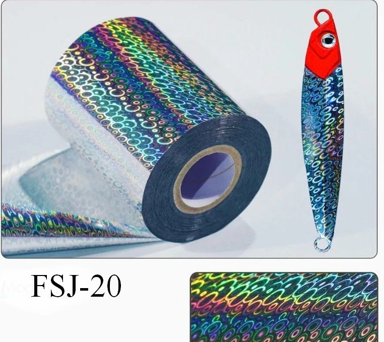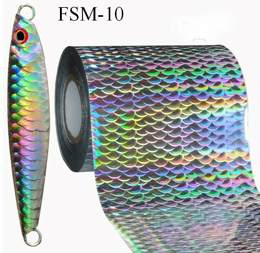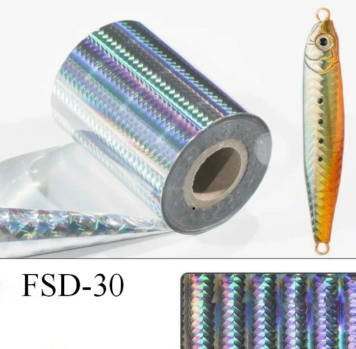 "Hot Stamp Supplies for the Fishing Lure Guys, and Gals (BTW).* Please read the following! Here are the 5 new (most sought-after styles, normally available only from China, as far as we know) of holographic fishing lure foils, including the number one: FSM-10. PLE ASE NOTE: if you prefer only this large fish scale pattern, you may choose to have all five roles of this pattern (or of any other pattern in this list). See individual photos. These Holographic foils are considerably pricier than regular brilliant foil due to the intricate fish scales patterns. I buy these in large master rolls and cut them down to a manageable size (3 inches wide by 30 feet long) for fishing lure enthusiasts. PLEASE NOTE: these rolls are 30 feet long, NOT 100 feet long. The first photo shows the actual size of each of the five rolls. The other photos are included only to show the texture of the holograms, NOT the size of the rolls. They also include actualy fishing lures that have been created with each foil style. This offer is for one each of the 5 holographic foil rolls shown., or you may include any assortment among these five - just tell me in Notes to seller, or in an eBay message. Photography can exaggerate the effect of the hologram; the actual colors will vary depending on the amount and type of light. Once again: these rolls are 30 feet long, much less than my standard Kingsley rolls. SPECS • Five rolls of holographic foil (one each of the five rolls shown, or assorted), and are regular foils for stamping on most surfaces • All rolls fit our canister replacement tube, not included • 3 inch wide foil on 1/2" core • 30 foot long rolls • Now just $6.00 per roll • FREE Shipping