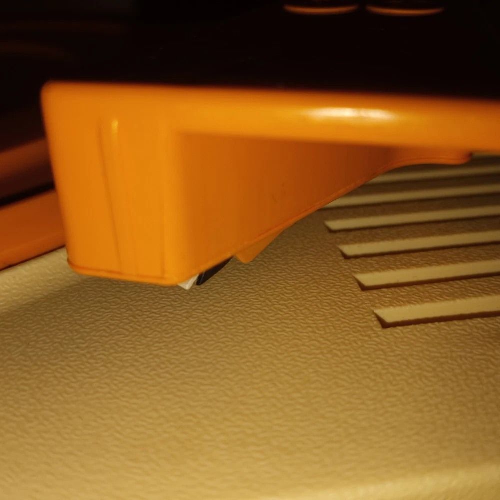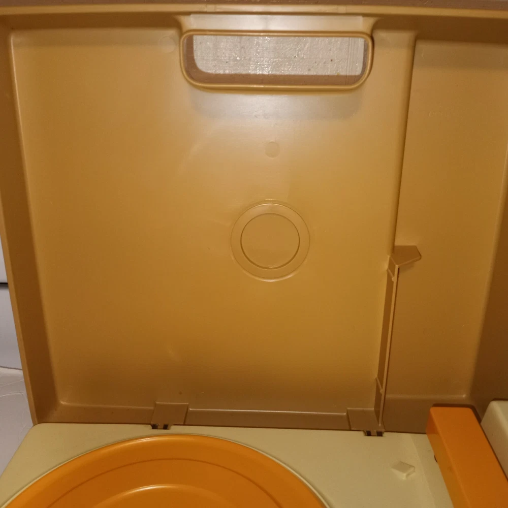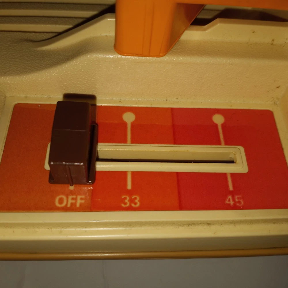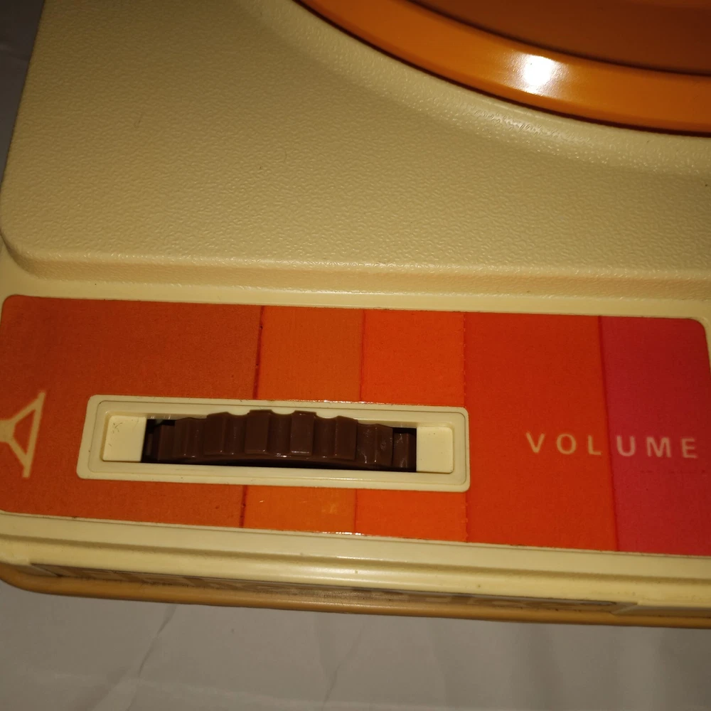Experience nostalgic tunes with the Fisher-Price Model 825 Child's Record Player, a charming vintage piece from 1978. This turntable is a delightful throwback, enabling kids to enjoy their favorite 45s and 33 RPM speeds. It's crafted in Mexico and features built-in speakers that promise to deliver clear and fun audio for little ones.The record player boasts a user-friendly design tailored for children, ensuring an accessible and enjoyable experience. Whether it's for a playroom or as a retro addition to a collection, this Fisher-Price record player offers a timeless appeal for those who appreciate classic toys with a musical twist.