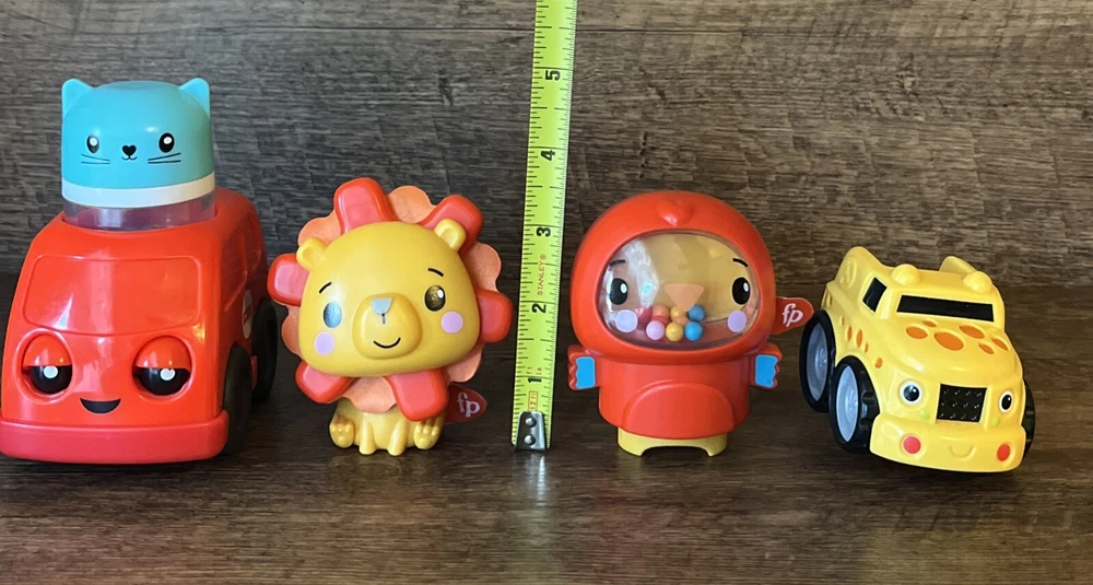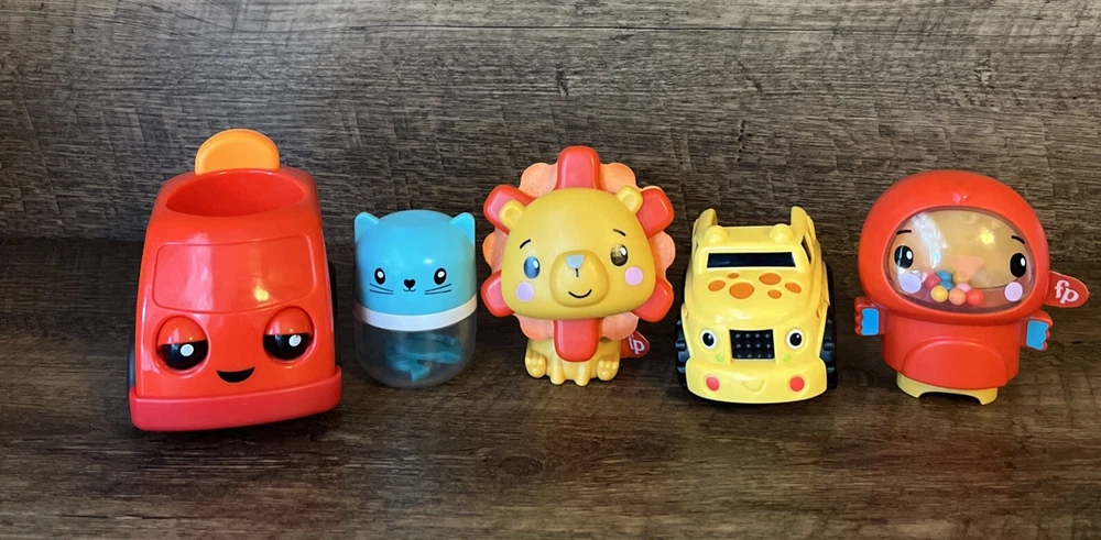 Fisher Price Baby Toddler Toys Sensory STEM Colorful Kitty Truck Lion Ships Fast. Lion’s mane clicks as it swivels around, he is also a rattle. The one figure has a speaker on the bottom, when you squeeze it in it squeaks and is also a rattle. The kitty has cute little fish in the bottom making it rattle, too. The giraffe truck is a rattle as well. Super cute and colorful toys, hours of entertainment. Please see pictures for minimal wear, some scuffs. Good, clean condition. Check out our store, Shiloh Trading Post, for more of the things you like! We combine shipping. Thank you for shopping at Shiloh :)