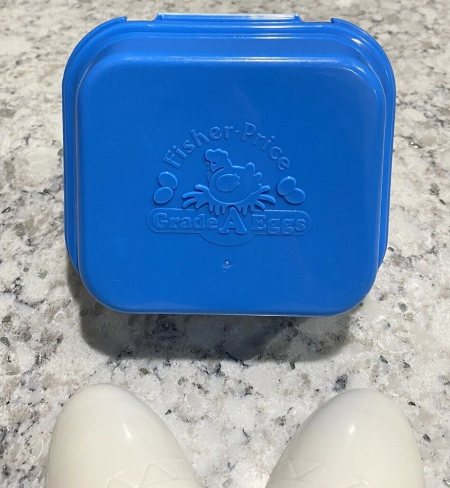 Here is a vintage Fisher Price egg carton and 2 eggs. There is minor play wear, so please see photos for condition. All items come from a smoke-free home. Please feel free to ask any questions you may have. Thanks so much!