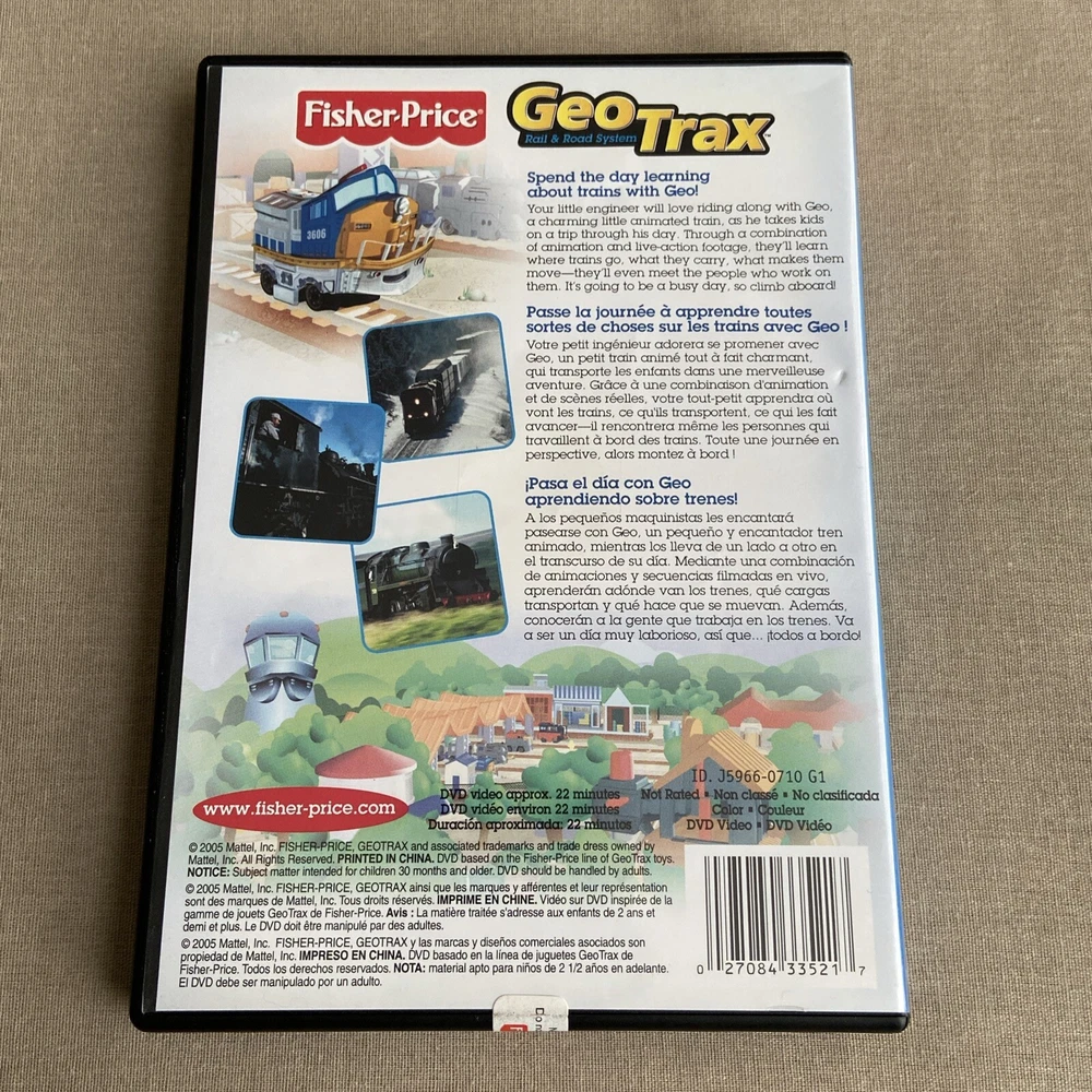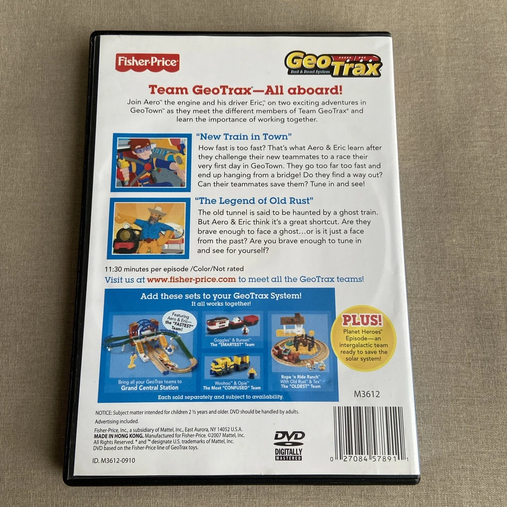 Fisher-Price Geo Trax Rail & Road System Video Set 1. Team GeoTrax - All Aboard! -Episode 1: New Train in Town -Episode 2: The Legend of Old Rust -Episode Bonus: Planet Heroes (intergalactic team) 2. My Day with Trains: Spend the Day Learning About Trains with Geo! -starring the voice talents of: Brian Drummond, David Kaye, Ian James Corlett, Mark Oliver, & Brent Miller + 33 & 22 Minutes ~. Fisher Price / Mattel 2005/07 DVD releases. -2-Case, 2-Disc Set. Eric / Bunsen / Sir John / Opie / Bruno / Jenkins / Victor / Tex + Children's & Family / Kids / Preschool / Toddler / Animated / Animated / Live-Action / Educational / Teamwork / Problem Solving / Travel / Transportation / Trains / Engine / Rails / Railway / Tracks / Types / Filming / Footage / Engineer / Ride Along / Trip / Cargo / Working Together / Series / Show / Programs / Mystery / Investigation / Humor / Buddy / Friendship / Adventures / Fantasy / Facts Light shelf / case wear (photos). Discs are clean with some light signs of use (photos) and in working condition. -Tested. -the data-side of the disc has been professionally cleaned (They still have a few light scratches, photos) Please view the provided photos, items specifics, and description. Please ask any questions. Thanks for checking out our page!