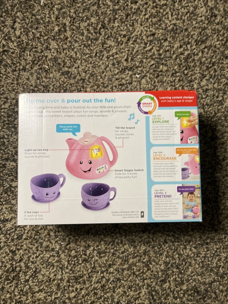 The Fisher Price Laugh And Learn Tea For Two Talking Tea Set is a fun and educational toy designed for children aged 6 months to 36 months. This interactive set includes a talking teapot and 2 cups that respond to touch and interact with your child through light and sound. With its smart stages technology, this toy provides an engaging play experience that is tailored to your child's development and age, making it a engaging and interactive way to stimulate young minds.