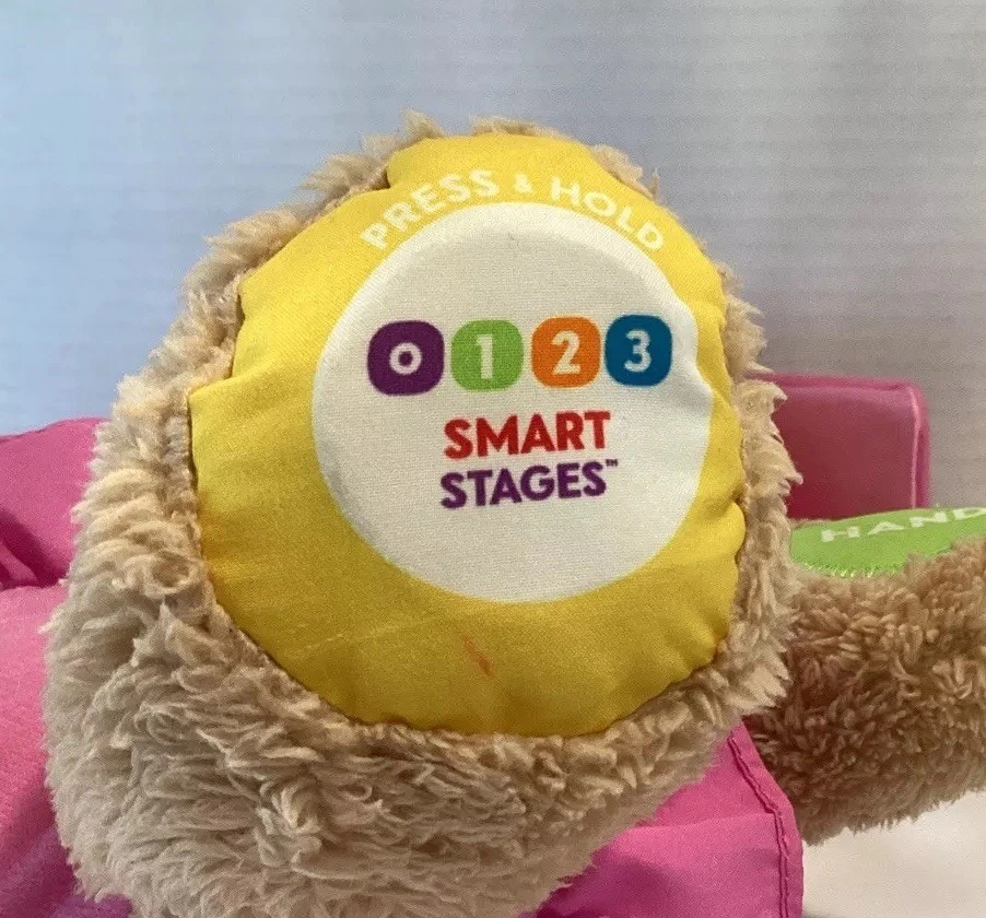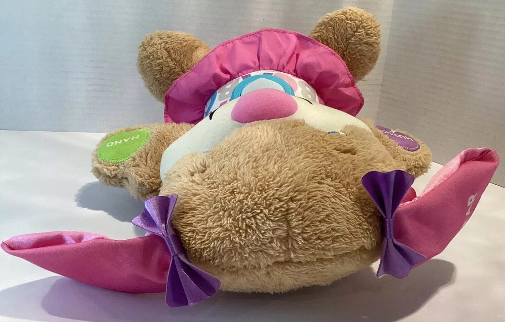 Fisher Price Little Sis Puppy Dog Laugh And Learn Smart Stages FDF22 is a used learning toy designed for girls aged 18-24 months. It is a pink-colored Fisher-Price model with the Laugh and Learn theme and the character family of Fisher Price. The toy helps develop hand-eye coordination, language, and memory skills. It has smart stages technology and is made in China.