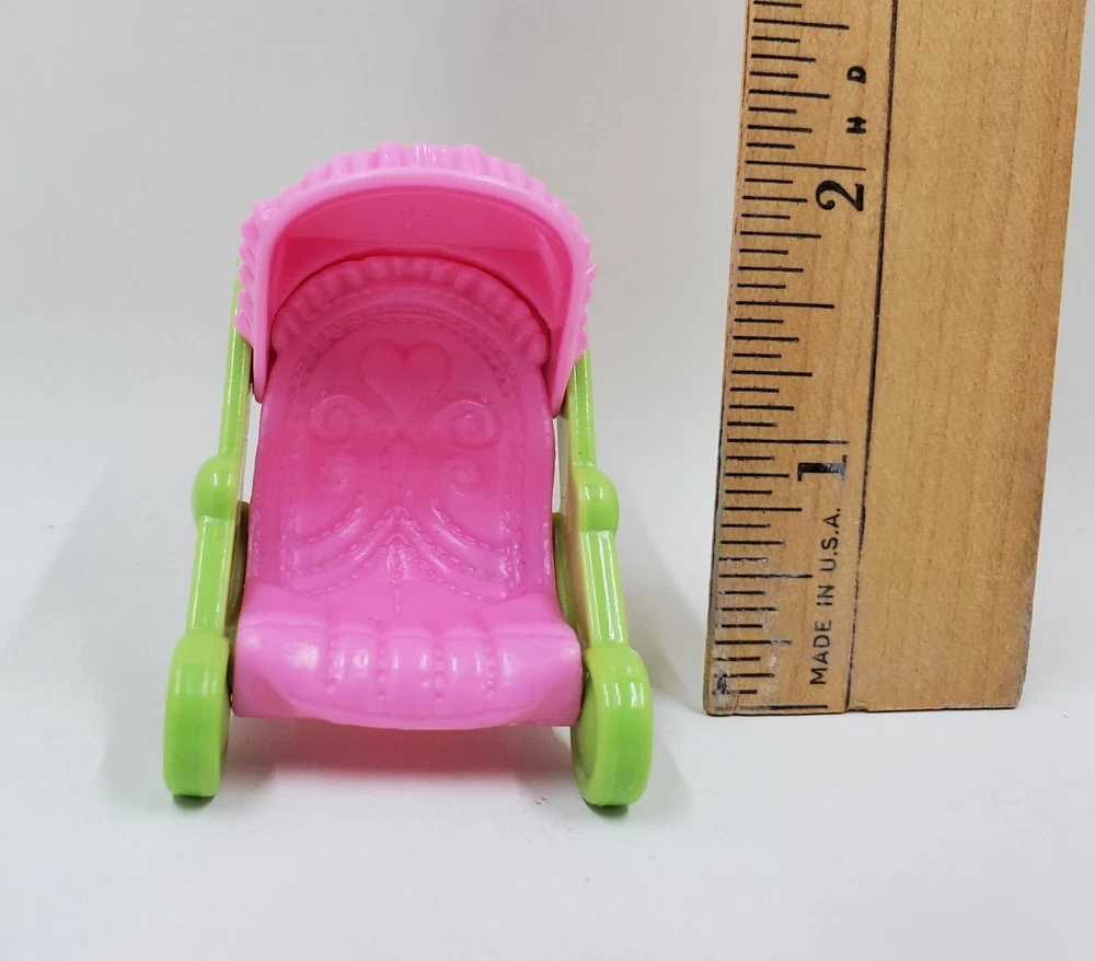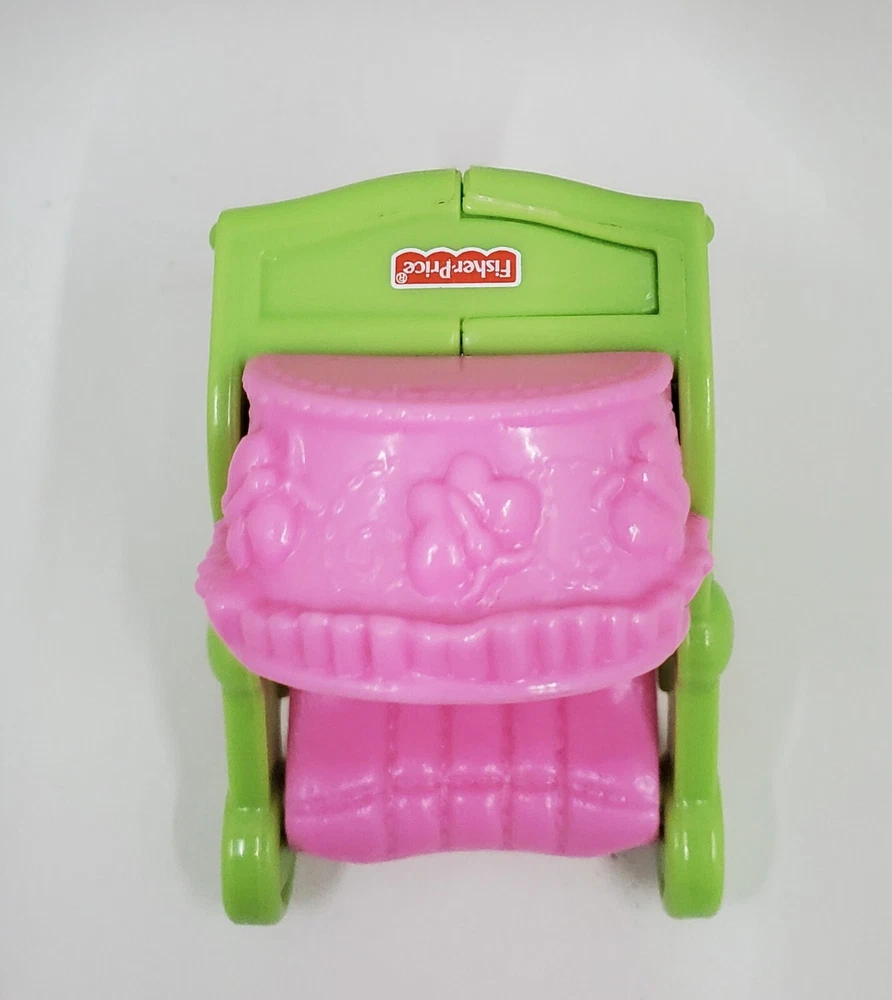 Fisher Price Loving Family pink and green baby stroller. In good preowned condition.